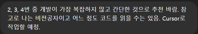 그랬더니 5개를 알려줬고, 그중 마음에 드는 것 3개를 골라, 세 개 중 만들기 가장 간단한 걸 알려달라고 했습니다.