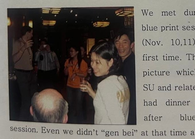 위에 나온 프로젝트는 당시 우리 둘 다 미국계 회사를 다니고 있었고, 같은 회사라곤 하지만 나는 한국지사 아내는 중국 상해 지사에서 근무하여 한 회사라고는 하지만 서로 만날 일이 없는 사이였다. 그러다 미국 본사에서 24개 국가의 계열사 모두를 SAP-ERP 시스템화하는 프로젝트를 진행했는데 총 3년이 소요되었고, 그중 4번째로 중국과 한국이 함께 진행했다. 다만 미국 본사 인력들과 딜로이트 컨설턴트들이 한국과 중국을 오가면 고급인력들의 시간과 비용 낭비이니 저렴하고 중요성이 적은 한국인력 10여 명을 중국으로 불려 들여 8개월간 진행한 프로젝트였다. 중국 상하이에서 출장으로 처음 지금의 아내를 처음 만났고, 그 뒤로 여러 작은 인연들이 겹치면서 가까워질 기회가 된 것 같다. 그때는 중국어를 읽을 줄 몰라 네이버 지식인에 지식인 포인트를 걸고 번역을 부탁해서 쓴 아내 중국어의 내용을 파악하기도 했다. 그것을 책으로 엮어서 프러포즈할 때 활용했고, 중국어를 조금 읽을 줄 알게 된 지금 그 책자의 중국어를 보고 뉘앙스를 알게 되니 감회가 새롭다 ~~