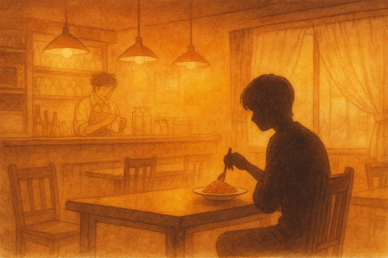 식당 문이 천천히 열리며 저녁빛이 스며들었고, 나는 마지막 한 가닥 면을 다 먹은 후 포크를 내려놓았다. 사장은 여전히 웃고 있었다. 익숙하지만 끝내 이름을 알 수 없는 그 얼굴. 내가 꿈에서 깨면 사라질 이 순간.