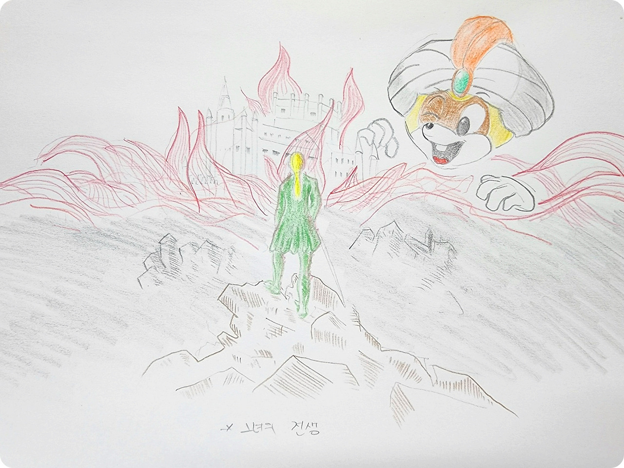 가족들을 데리고 성을 빠져나가고, 시간이 흘러 먼발치에서 보이게 된 하얀 성, 나를 따르던 이들은 금세 붉게 물들고 결국 검게 재가 되어갔어요.