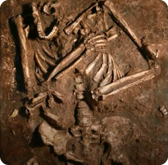 캐바라 동굴에서 발견된 네안데르탈인 화석. 뼈밖에 안 남았지? (워싱턴대학 다구미 기요치 동영상 캡처)