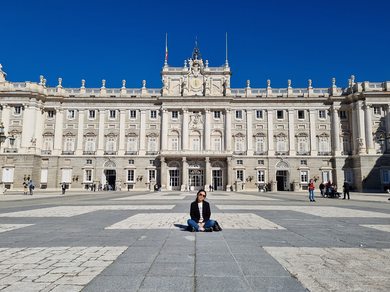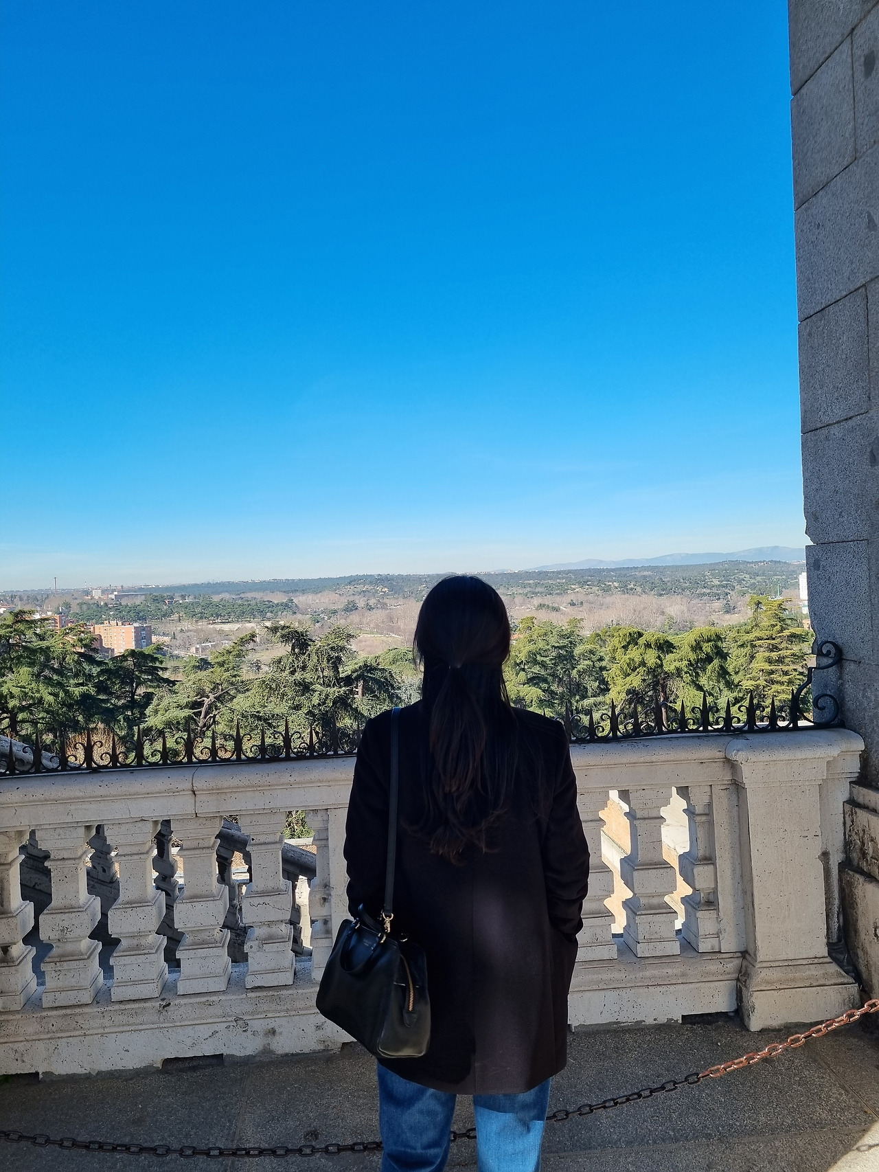 다음 날, 밝은 회색의 넓은 마드리드 궁전 위로 펼쳐진 하늘은 전날 보다 더 맑고 파랬다. 내 눈엔 파리의 베르사유 궁전보다 더 화려하게 느껴졌던 마드리드 궁전이었건만, 궁전 밖으로 나오자 파란 하늘 아래서 금세 빛을 잃었다. 가장 밝고 청아한 파란색 물감을 고르고 골라 사람의 손길이 잘 닿지 않는 산속 깊은 곳의 옹달샘에 풀면 저런 색깔이 나올까. 아무리 핸드폰 카메라의 각도를 바꾸어도 다 담기지 않는 하늘을 그래도 손에 쥐어 보고 싶어서 수 십장의 사진을 찍었다.