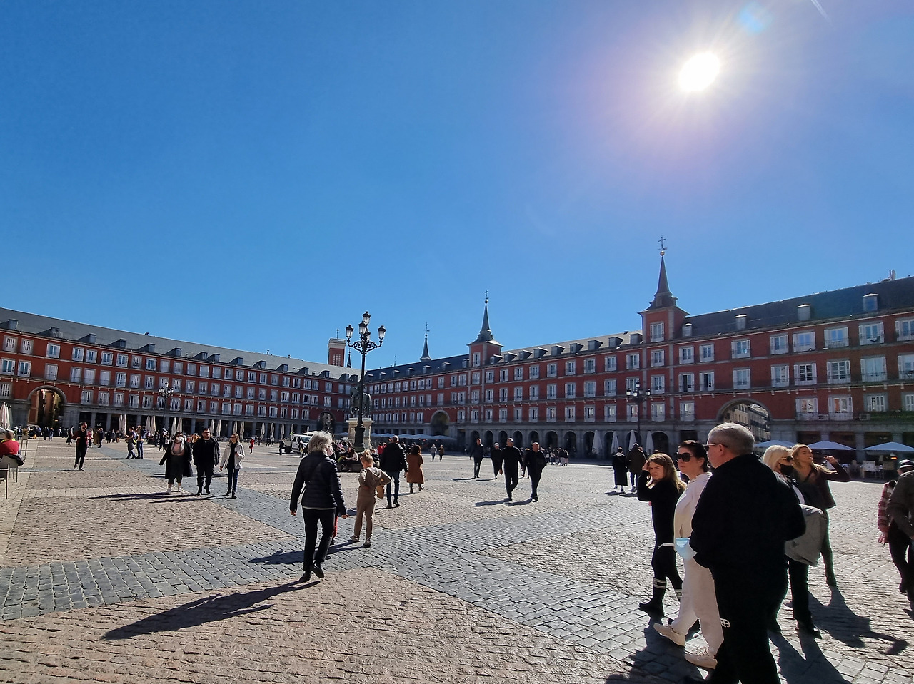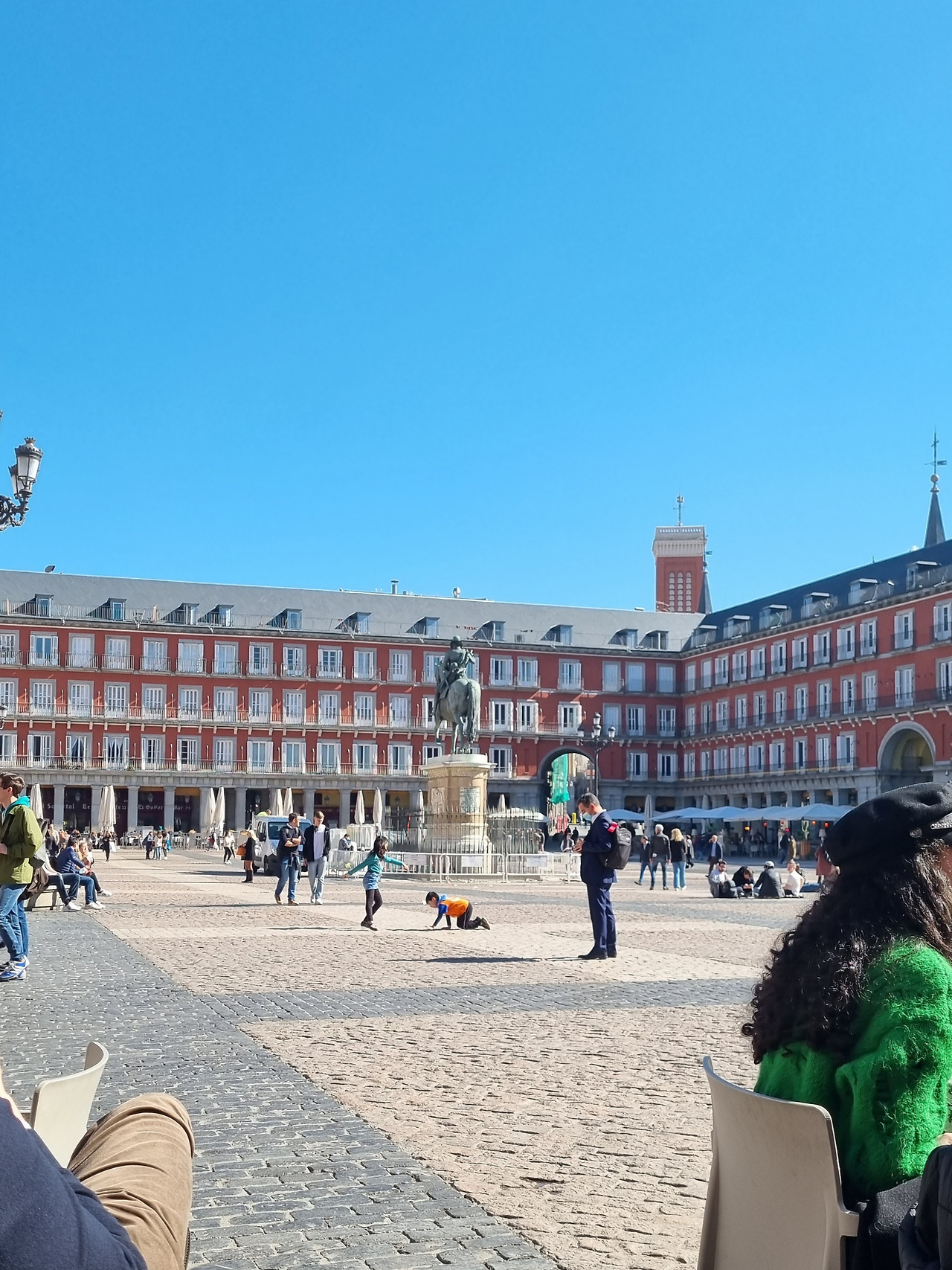 마요르(Mayor) 광장의 노천 카페에 앉아 있을 때 머리 위로 흐른 하늘은 또 얼마나 화사했는지. 파란 하늘 아래 반들거리는 돌바닥을 ‘사족보행’으로 기어다니는 아이의 모습마저 사랑스럽게 만드는 파랑이었다(그런데 아들아, 굳이 왜 그렇게까지 하고 노는 거니? 응??).