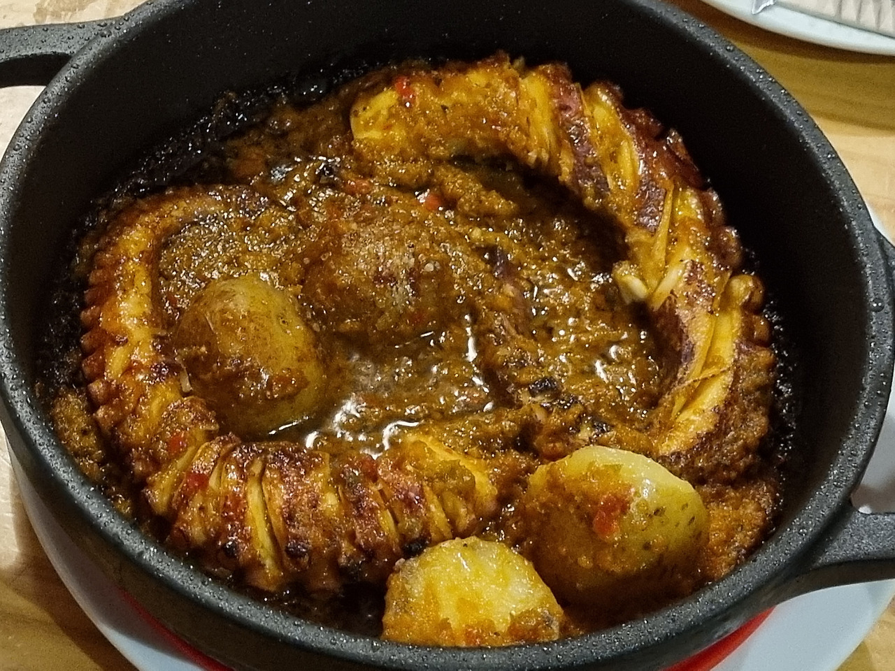 내 생애 그렇게 식감이 부드러운 문어 요리는 처음이었다. 한국에서 문어 요리를 먹을 때면 끝에 남는 질긴 식감 때문에 결국엔 뱉어내야 하는 경우가 종종 있었는데 스페인의 문어는 국적이 달라 그런지 부드럽기가 조금 과장을 보태 마시멜로 같았다.