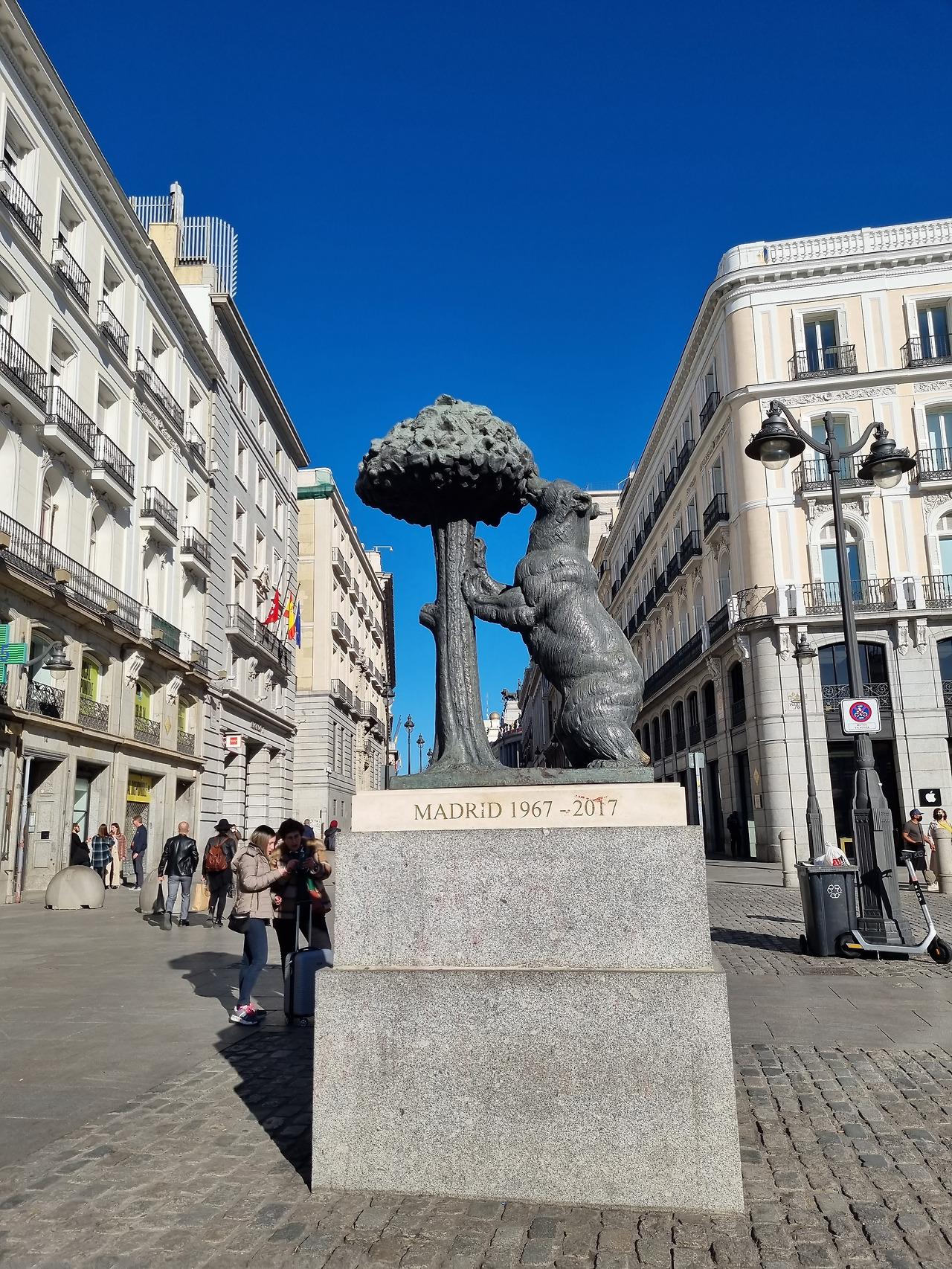 마요르 광장을 보았으니 '솔 광장(푸에르타 데 솔 광장, Puerta del Sol)'은 굳이 갈 필요가 없을 것 같아 태양 아래서 느긋하게 쉬는 중에, 먼저 스페인 여행을 다녀온 친구를 통해 솔 광장에 마드리드 도시 문장에도 들어가 있는 ‘딸기나무와 곰 동상’이 있다는 것과 그 근처에 마드리드에서 제일 유명한 역사와 전통을 자랑하는 츄러스 맛집이 있다는 정보는 입수했다. 동상은 안 봐도 그만일 듯 했지만 역사와 전통은 존중받아야 하기에 우리는 마요르 광장에서 엉덩이를 털고 일어나 솔 광장으로 향했다. 달콤한 초콜릿을 듬뿍 찍어 순식간에 츄로스 6 조각을 해치운 뒤 솔 광장 분수대에 앉아 바라보는, 해가 저물어 가는 하늘은 반투명하게 푸른 미농지 같았다.
