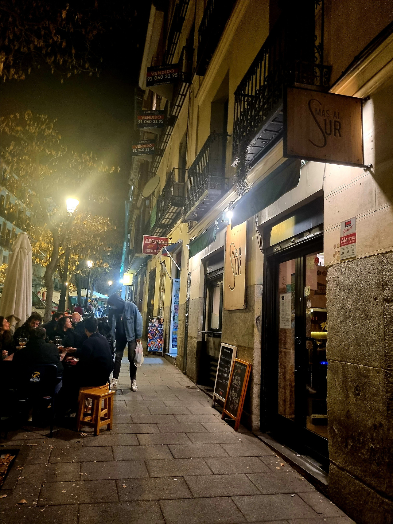 원래도 오후 출발 비행기였던 데다가 바람 때문에 시간이 더 지연된 탓에, 마드리드 공항에서 아토차(Atocha) 기차역으로 버스를 타고 이동해 기차역에서 멀지 않은 위치의 호텔에 체크인을 하고 나니 8시가 다 되었다. 아이들을 데리고 밤길에 멀리 가기도 마땅치 않아 구글맵에서 숙소 근처 평이 나쁘지 않은 식당을 검색했다. 다행히 가까운 곳에 사진상으로는 멋스럽고 ‘맛스러워’ 보이는 식당이 있었다. 숙소에서 나가 골목 모퉁이만 돌면 있는 정말 가까운 식당이었다.