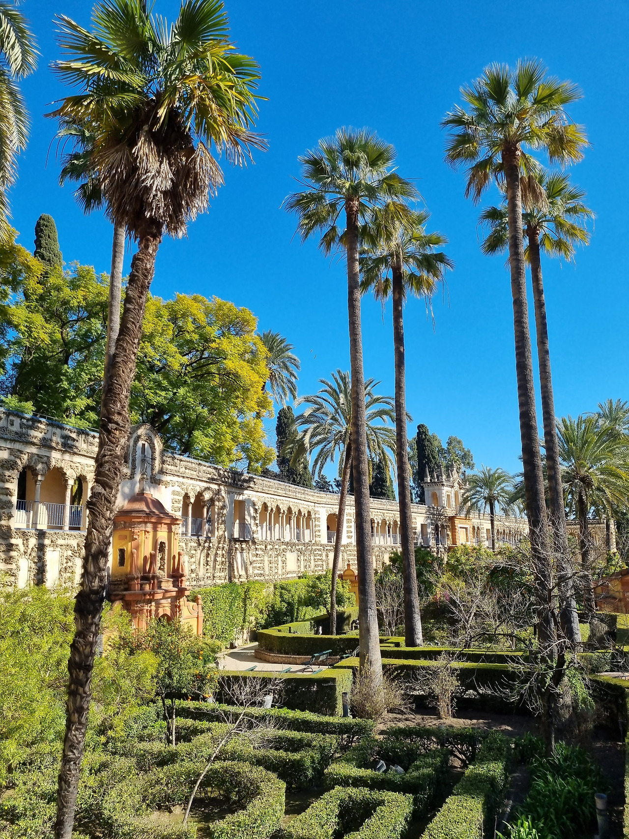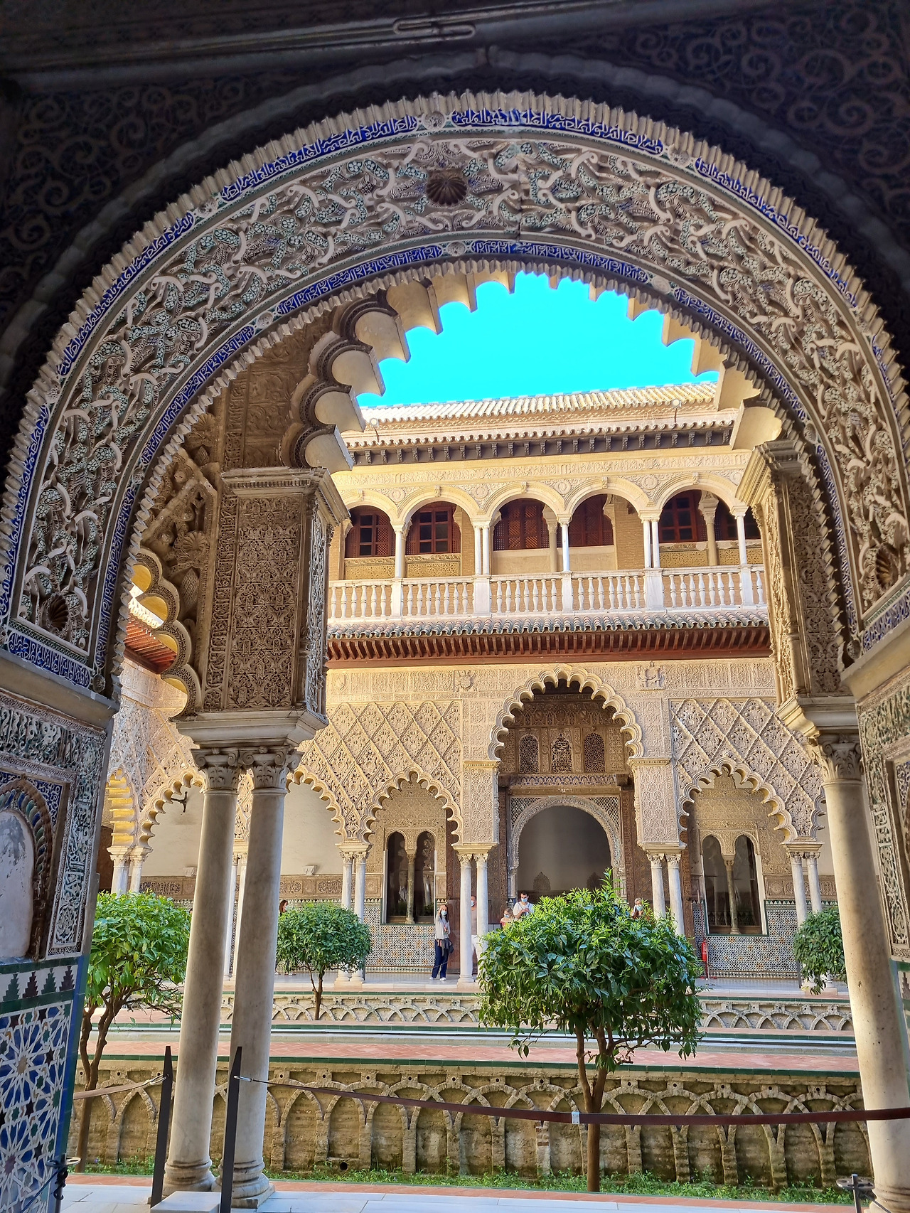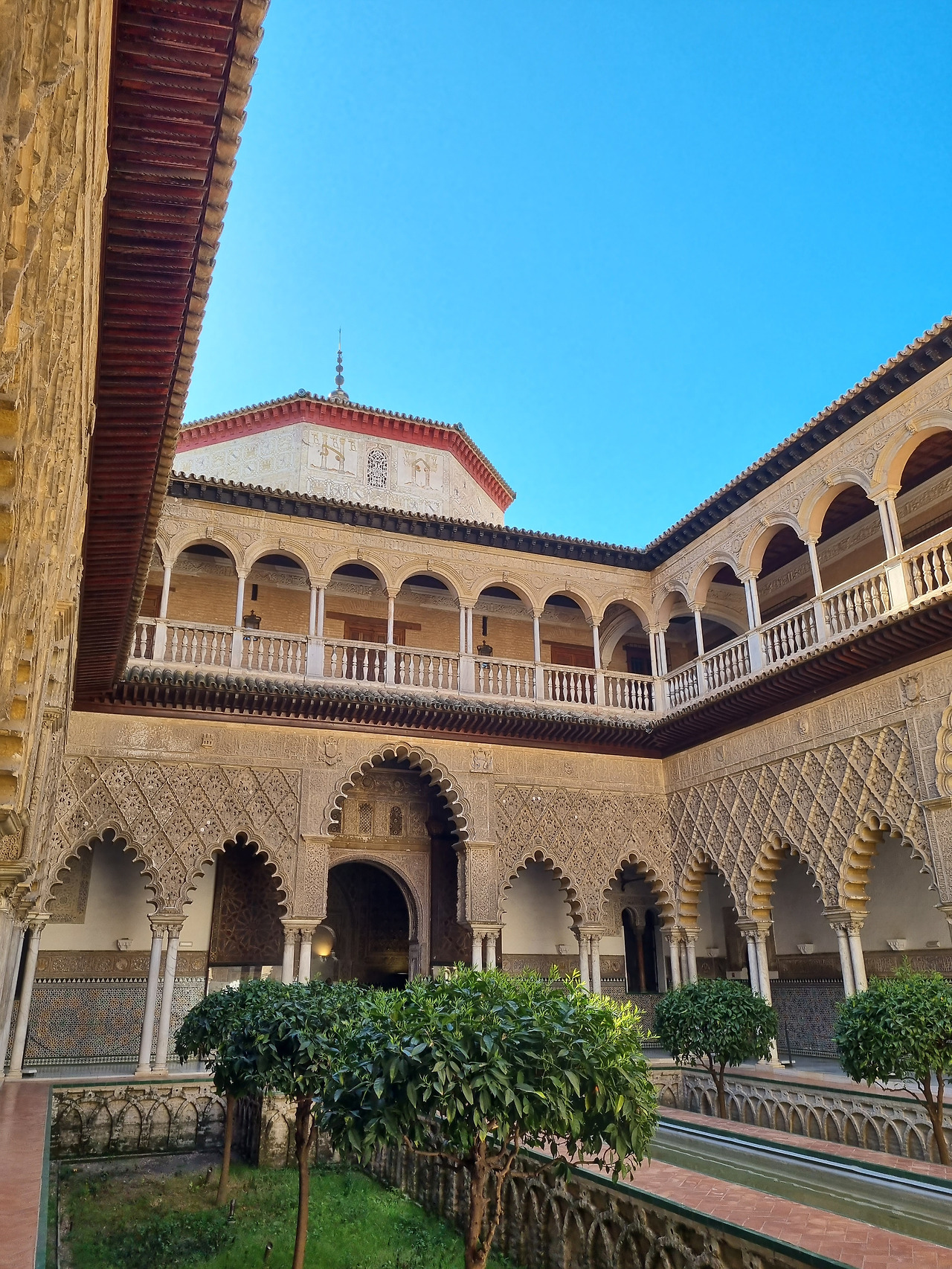 세비야는 이슬람 문화의 영향으로 거리의 풍경이 아주 다채롭다. 건물의 모양이 동글동글하고, 건물의 색깔은 원색적이고 알록달록하다(여기에 오렌지 가로수도 한 역할을 더한다.). 대표적인 이슬람 유적, ‘알카사르 궁전(Real Alcazar de Sevilla)’의 살구빛 외관과 내부의 노란색 벽, 정교한 세부 타일장식, 오렌지 나무와 열대나무들이 가득한 정원은 다채로운 색감의 축제 같다. 영국의 점잖은 미색 건물들을 주로 보다가 이 궁전에 서 있으니 전문 사진 촬영 스튜디오에 들어와 있는 착각이 들었다(그래서 사진을 무진장 찍었다. 하하.)