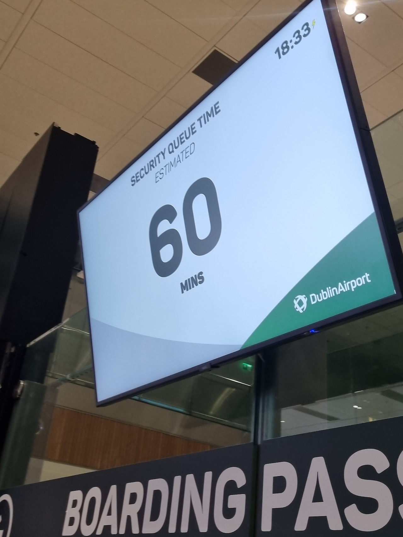 ‘어쩌면 비행기를 놓칠지도 모르겠다’는 우리를 공항까지 데려다 준 택시기사의 염려스러운 말에 갑자기 초조해진 마음으로 들어선 더블린 공항은, 아니나 다를까, 몇십 겹으로 겹쳐 줄을 선 사람들로 북새통을 이루고 있었다. 당혹감을 누르며 우리는 이미 온라인 체크인을 마쳤으니 이 긴 줄은 우리와 상관 없는 체크인 줄일 것이다 기대하였으나, 도로 위의 교통경찰관처럼 팔을 크게 휘두르며 공항으로 들어서는 사람들을 안내하는 공항직원은 슬프게도 이 줄이 검색대를 향하는 줄이라고, 한치의 흔들림도 없이 정확히 일러주었다.