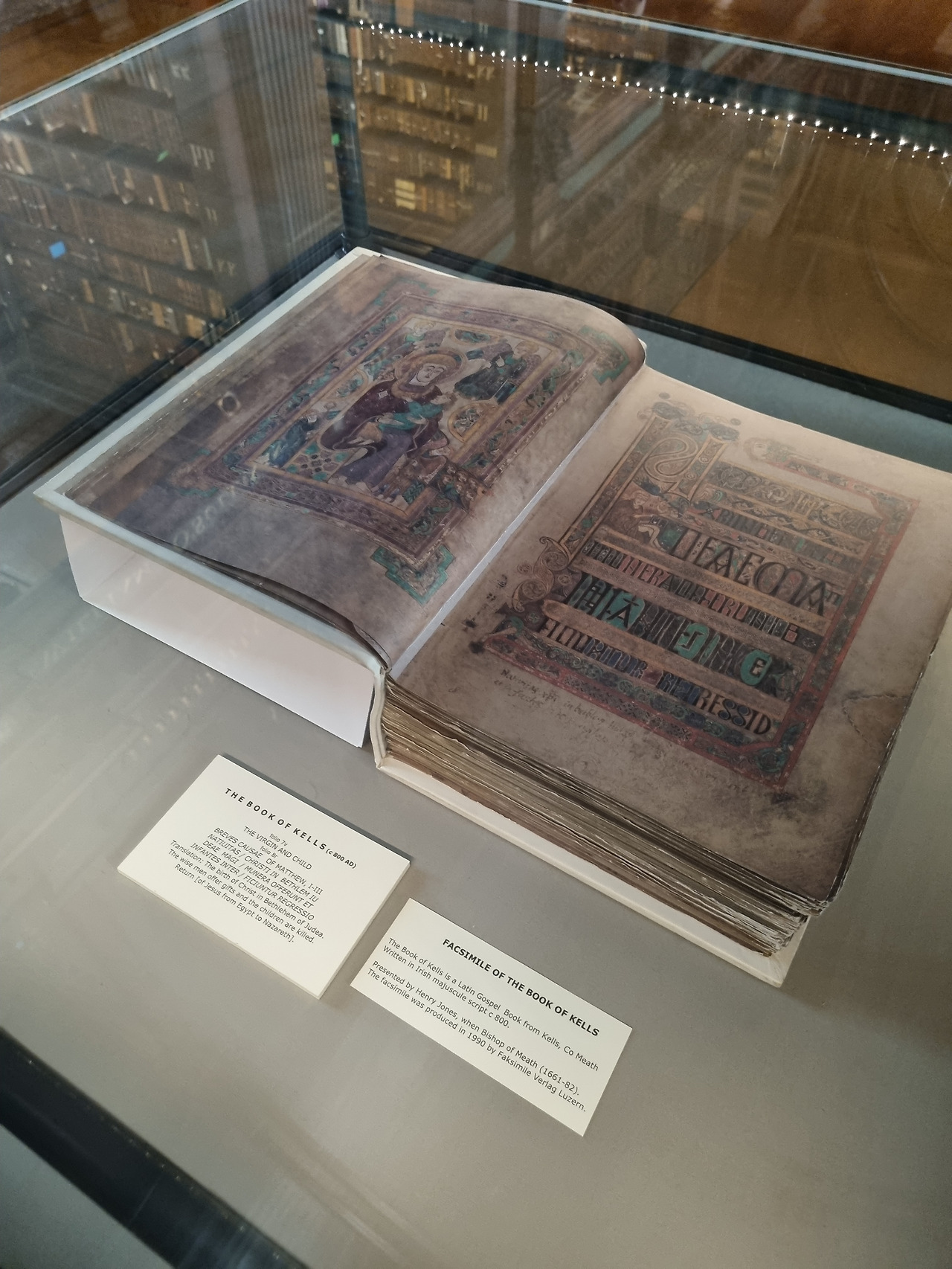 실제로 우리와 함께 ‘켈스의 서와 롱룸(The Book of Kells and the Old Library Exhibition, 두 공간을 묶어서 이렇게 부른다.)’에 입장한 유럽의 여행객들은 그 책을 아주 유심히 바라 보며 서로 이런 저런 대화를 나누었다. 그러나 기독교 신자도 아니고, 그 분야의 역사도 잘 알지 못하는 우리 눈에는 그저 오래된 예쁜 책, 유리 장식장 안에 보관되어 넘겨 볼 수도 없는 책, 넘겨본다 한들 라틴어로 돼 있어 읽어 볼 수도 없는 고서일 뿐이었다.