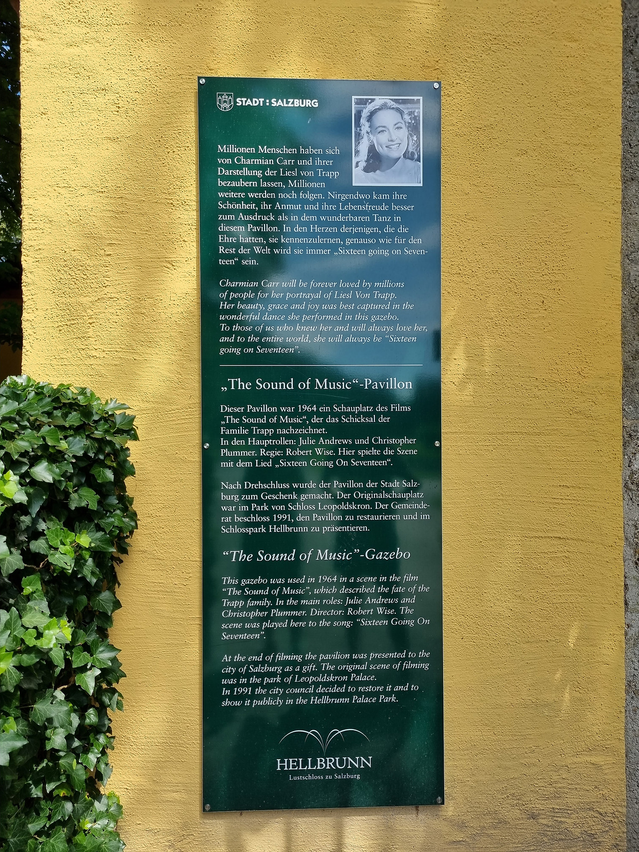그뿐만이 아니다. 잘츠부르크 외곽에 자리한 ‘헬브룬 궁전(Schloss Hellbrunn)’에도 <사운드 오브 뮤직>의 흔적이 남아 있다. 첫사랑을 알아가는 소녀의 애틋한 마음을 잘 표현했던, 대령의 첫째 딸 ‘리즐(Lizzle)’이 몰래 사랑하는 이(랄프(Rolf))를 만나 사랑을 속삭이던 장면을 기억하는가? (랄프는 나중에 도망치는 리즐의 가족을 고발하여 리즐에게 상처를 남긴다. 역시나 첫사랑은 아프다.)