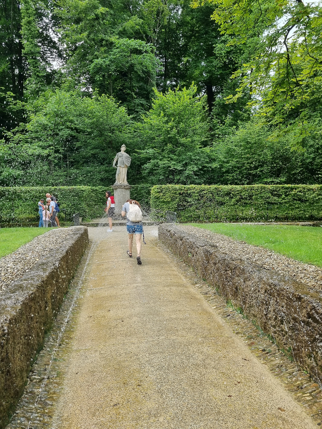 우리 역시 분수의 묘미를 충분히 즐겼다. 그럴수밖에 없는 것이 사람이 손으로 일일이 조작하는 분수는 관람객들이 충분히 젖을 때까지 계속되기 때문이다. 사람들이 분수를 피하며 몸을 사린다면 분수를 작동하는 사람도 몸을 사리다가, 분수가 이제 끝났나 하고 관람객이 지나가는 순간 다시 물줄기가 쏟아진다. 물론 우리가 여행하던 시기가 7월, 더위가 한창인 여름이었기에 더욱 최선을 다해 분수를 뿜어냈을 수 있다. 덕분에 친구와 나는 오랜만에 어린애처럼 즐겁게 물놀이를 즐겼다. 친구와 여행하는 동안 집에 두고 온 아이들 생각을 많이 하지 않았는데, 이 헬브룬 궁전에서만큼은 물줄기 사이를 뛰어다니며 신날 아이들 생각이 꽤 많이 났다.