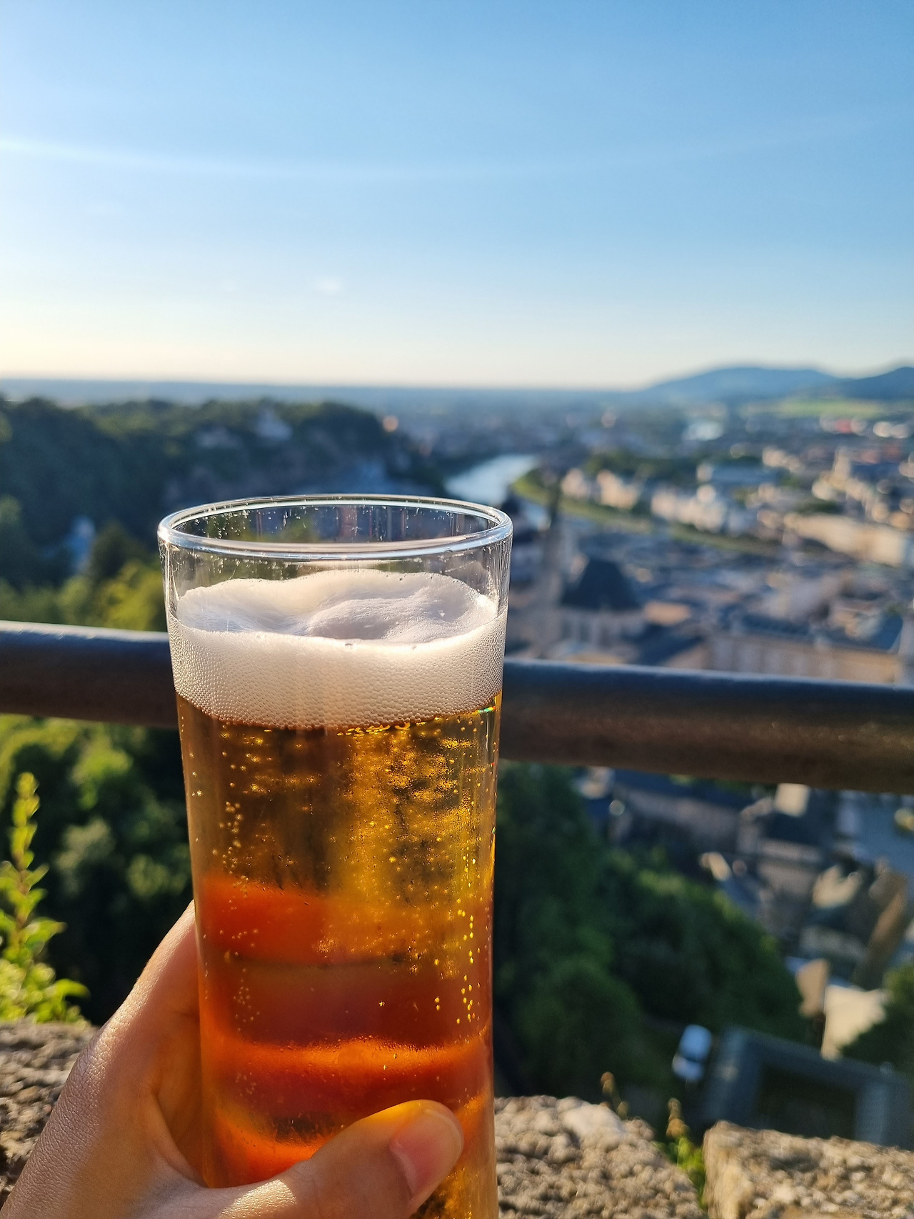 성벽 난간에 팔을 걸어 머리를 괴고, 성 아래 굽이치는 ‘잘차흐(Salzach) 강’의 윤슬을 바라보며 마시는 한여름 늦은 오후의 맥주 한 잔. 안주 겸 저녁식사로 시킨 오스트리아식 소시지 요리가 내 취향이 아닌 것도 아무 상관 없었다. 맥주를 마시지 않는 친구가 주문한 콜라에 달려드는 벌도 괜찮았다. 시중을 들어야하는 아이들도 없고, 반드시 가야하는 목적지도 없이 친구와 나란히 앉아 즐기는 여행의 여유와 운치, 그리고 기쁨이 지금 이곳에 있는데 무슨 불만이 있겠는가.