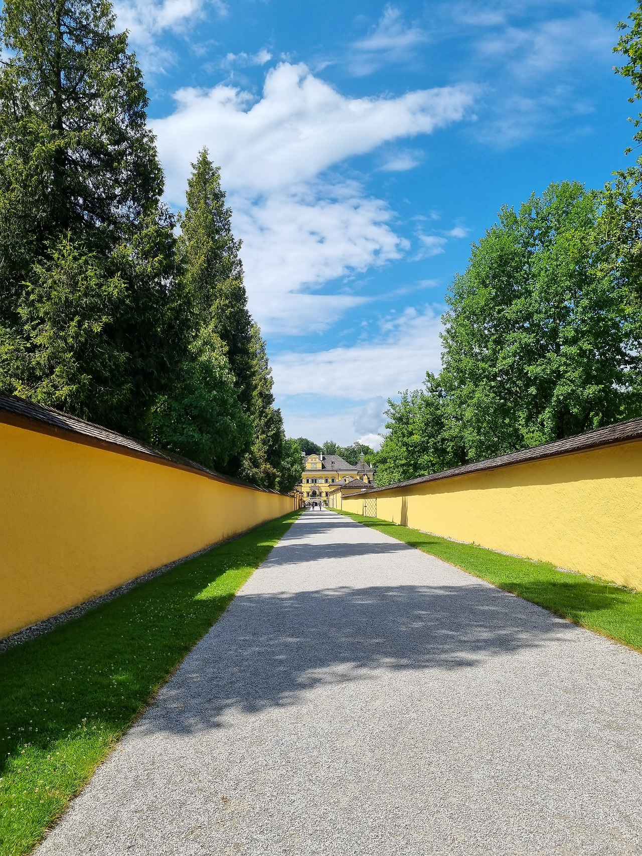 < '마리아'가 가정교사로 부임하던 날 노래를 부르며 뛰어갔던 길. 노란벽이 인상적이다. >