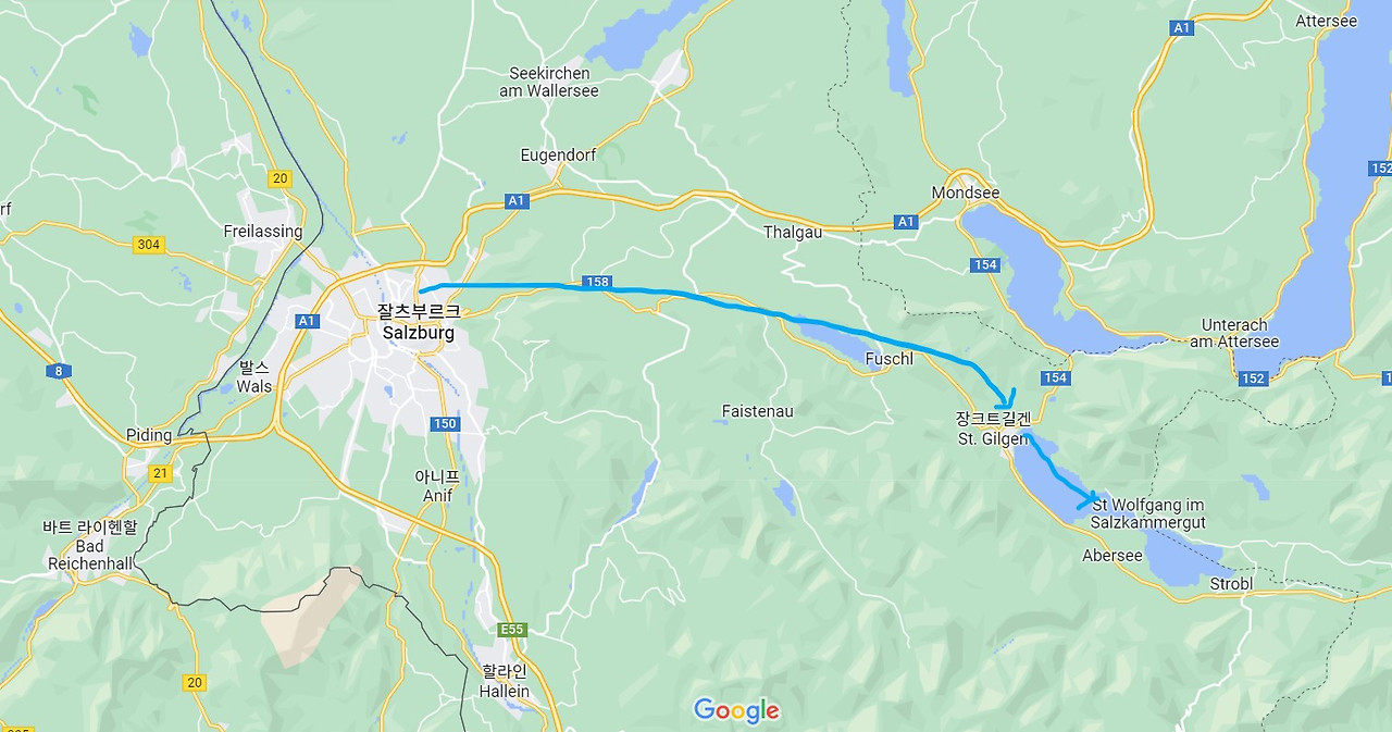 < 잘츠부르크에서 장크트 볼프강까지 (출처 : 구글맵) >