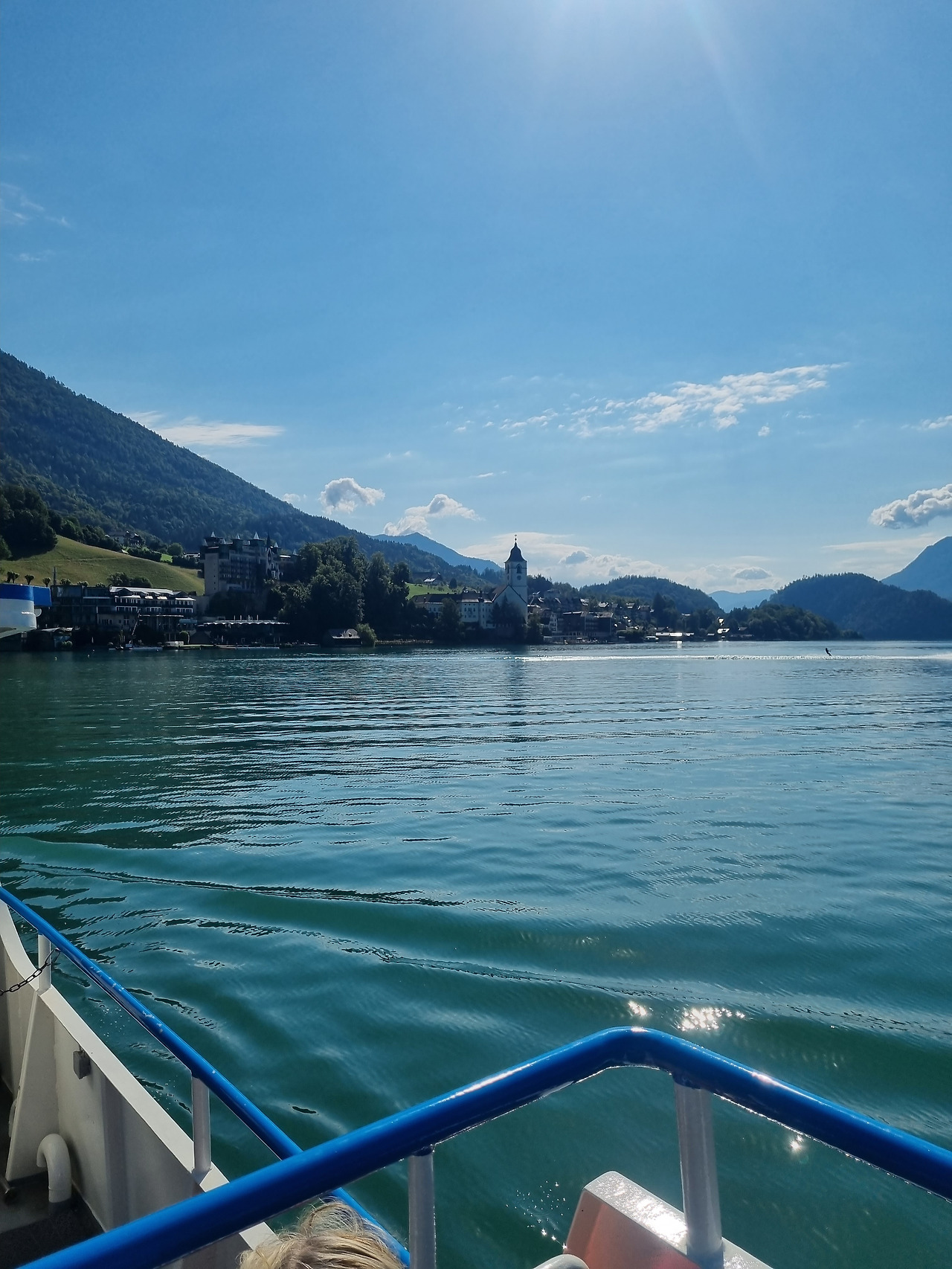 부지런히 아침을 시작한 덕분에 승객이 많지 않은 유람선에서 원하는 자리를 골라 앉았다. 2층 야외석 가장 뒷자리. 유람선이 볼프강 호수의 장막을 휘저으며 빠르게 달리자, 마치 기다렸다는 듯 하늘의 구름도 빠르게 흘러 파란 하늘이 나타났다. 눈부신 햇살이 밝게 비추는 장크트 길겐이 보다 선명하고 아름답게 멀어져갔다.
