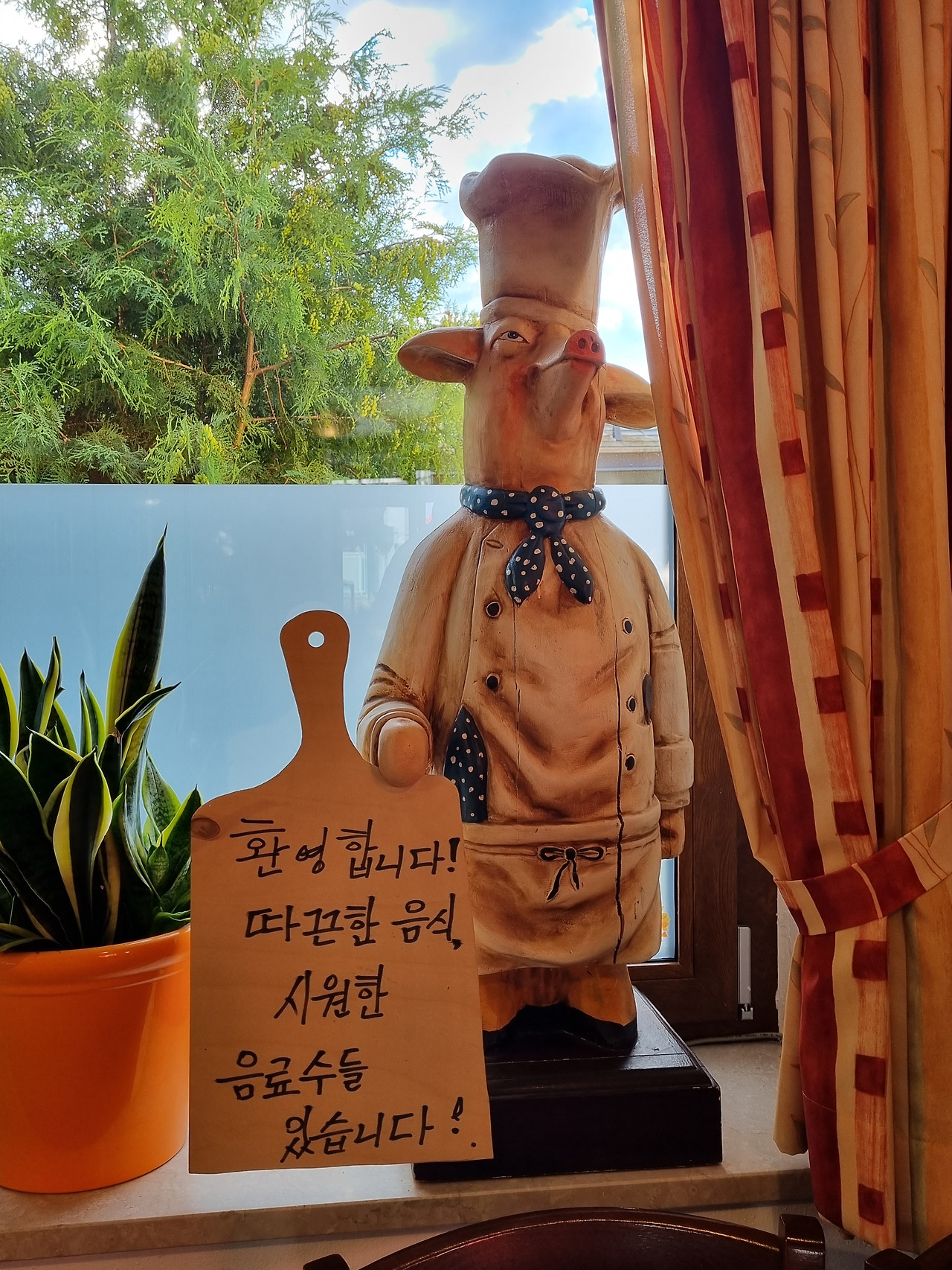반가운 한국어 안내글에 웃음을 머금고 음식을 주문했다. 커피는 전동머신 커피였고, 메뉴판의 음식 중 조리 가능한 것이 몇 가지 없는 빈약한 아침이었지만, 따로 글귀를 써서까지 한국인을 반겨주는 마음 덕분인지 제법 푸근했다.