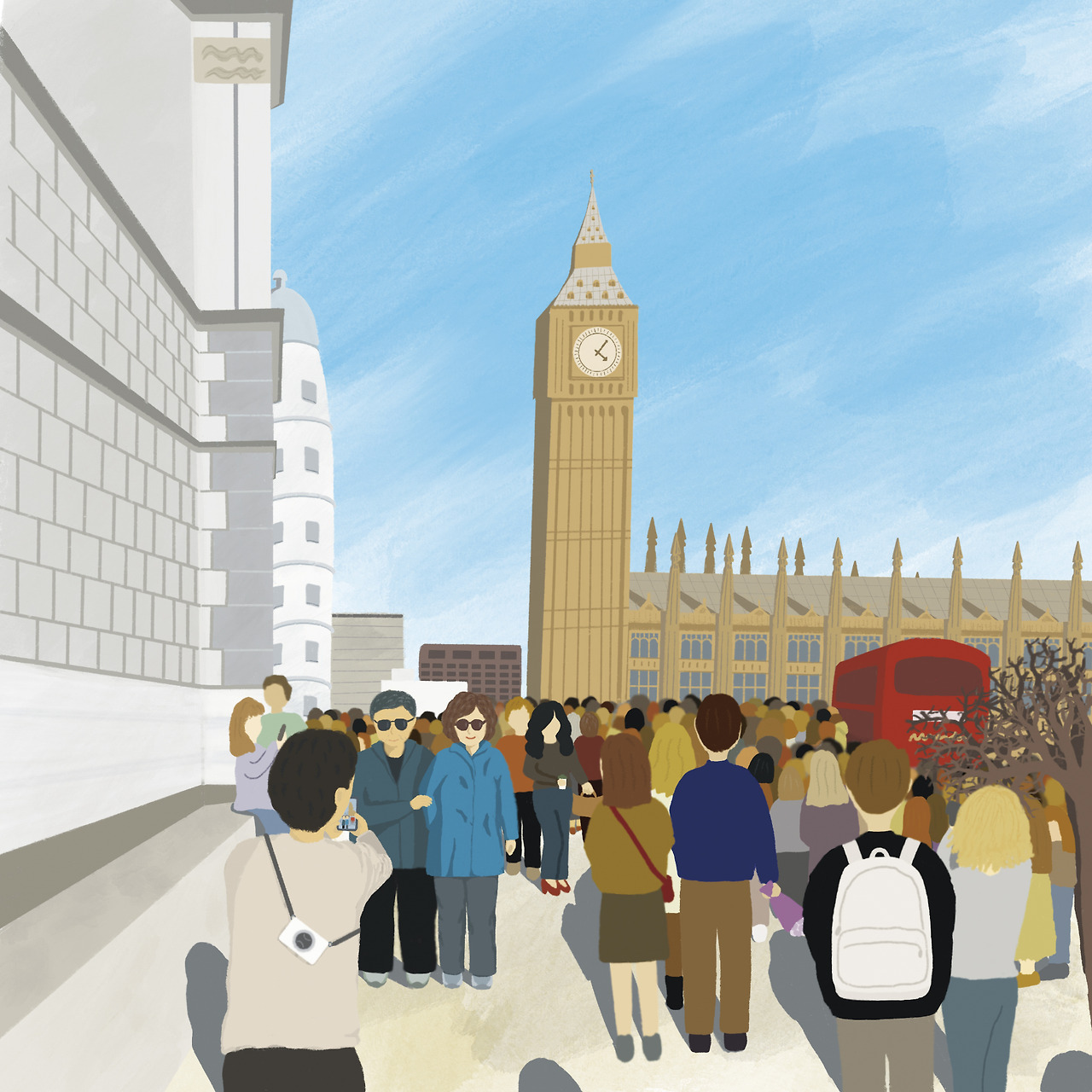 이 그림을 직접 그리면서, 물론 작은 디테일이 많은 빅 벤에 가장 큰 공을 들였고 또 그리기 쉽지 않은 작업이었지만, 무엇보다 그리기 힘든 것은 ‘사람들’이었다. 빅 벤 주변 거리에는 사람이 많아도 너무 많았다.