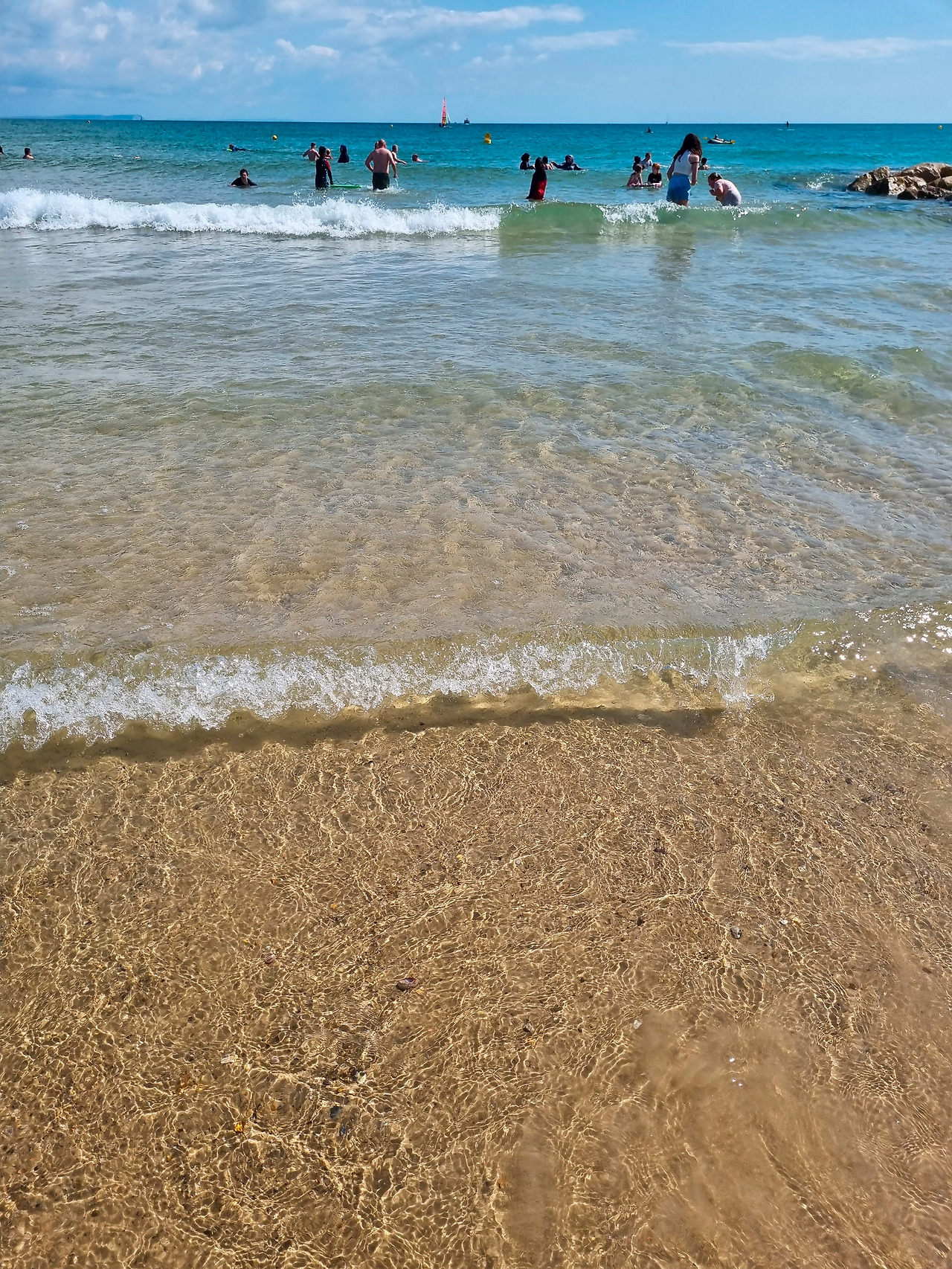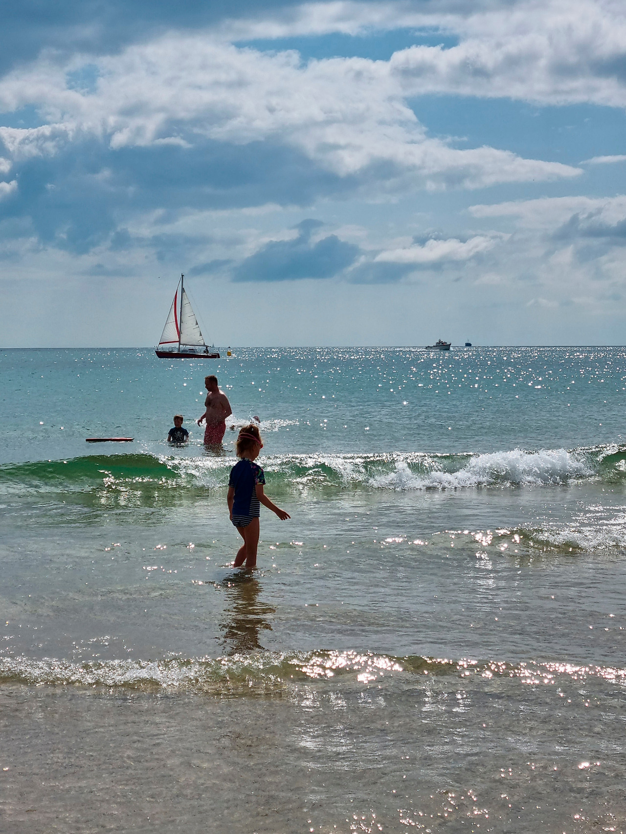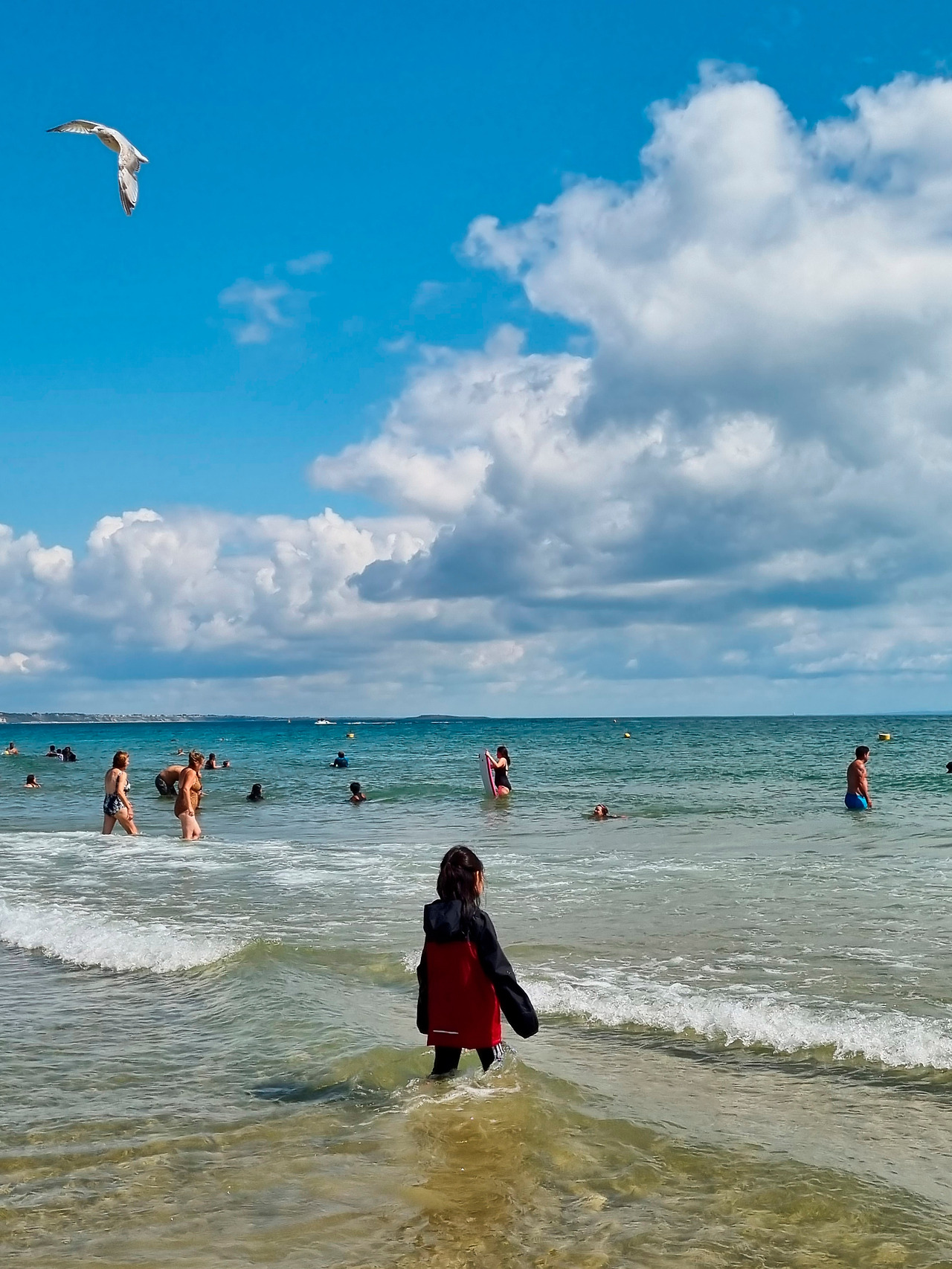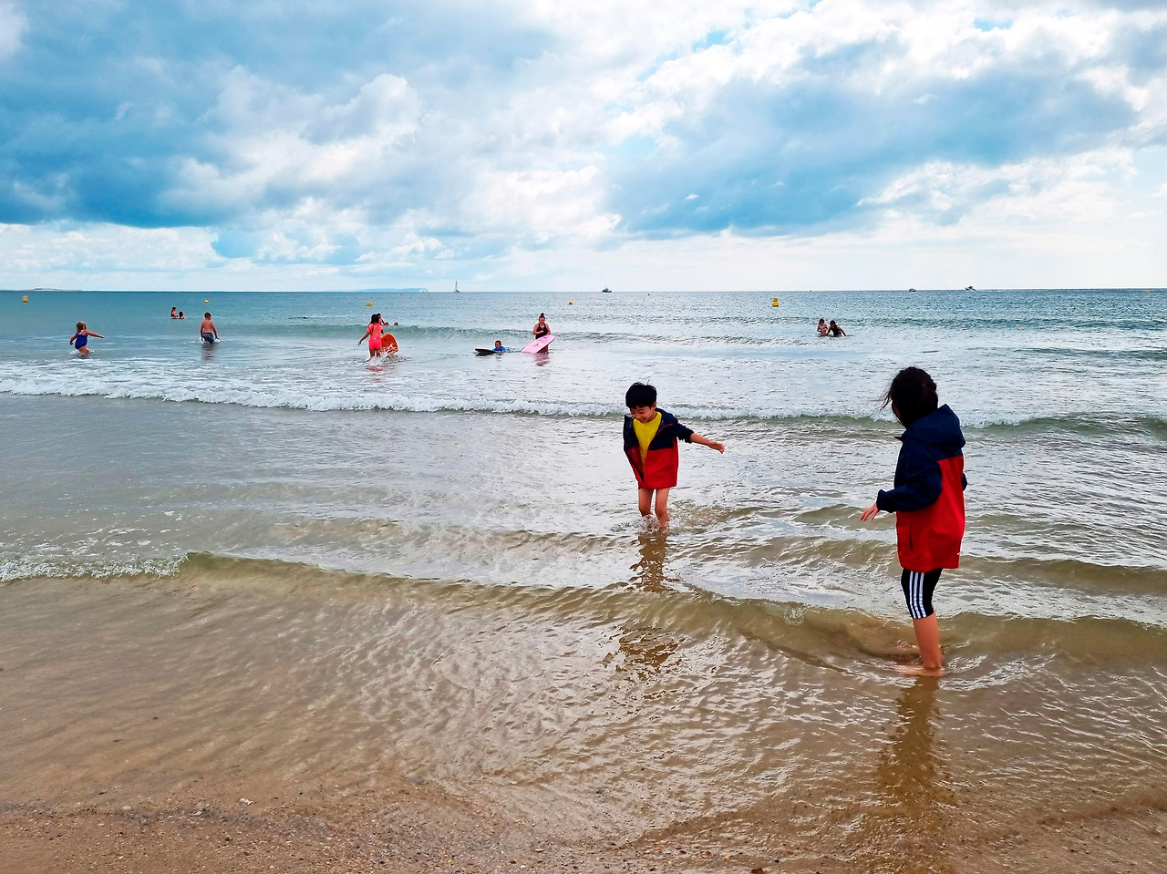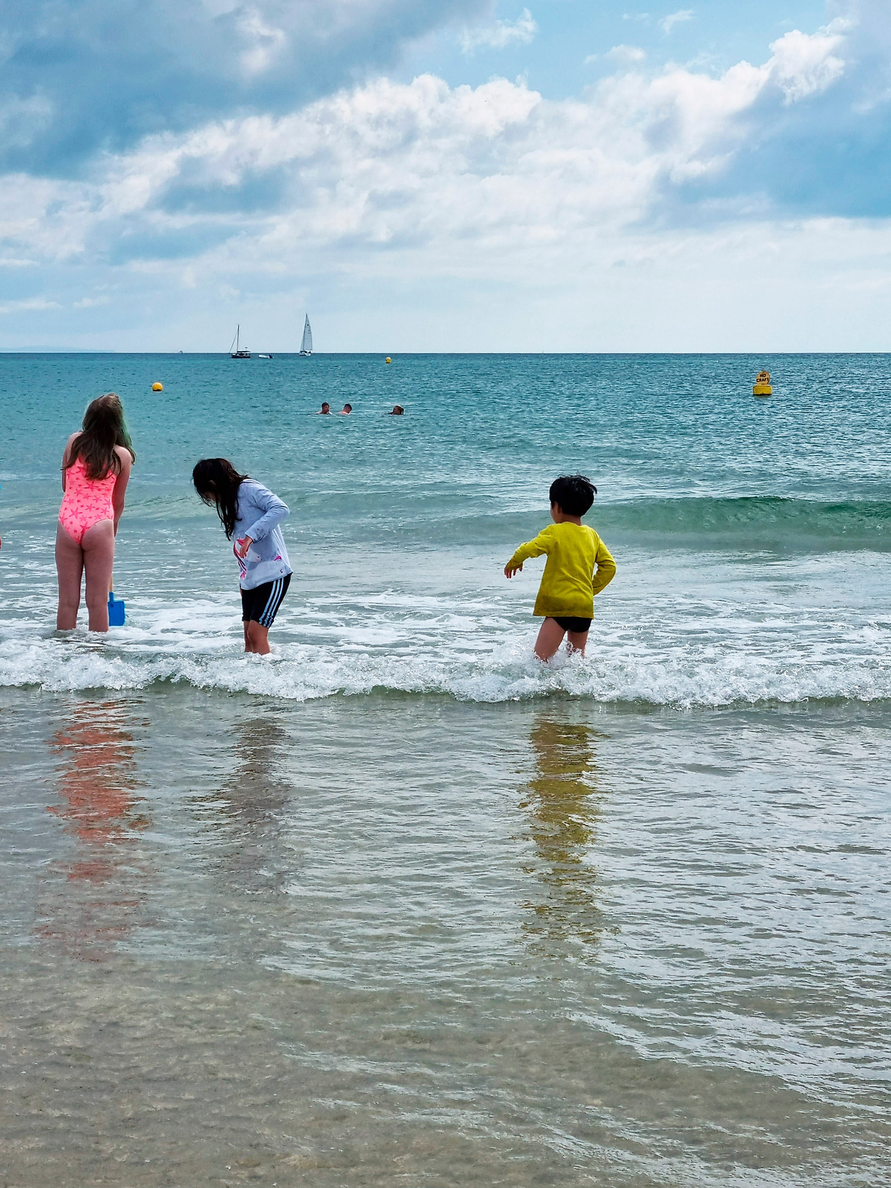 수영복을 입은 다른 아이들이 거침없이 물로 뛰어드는 것을 부럽게 바라보던 아이들의 바지를 걷어 올려 주었다. 바람이 많이 부니 옷이 젖지 않게 조심하라고 주의를 줬지만, 고삐 풀린 망아지는 제어가 되지 않듯 발끝에 찰랑이는 바닷물 맛을 본 아이들은 슬금슬금 한 발씩 바다를 향해 깊이 들어갔다. 곧 바지를 적시고, 티셔츠를 적시고, 머리카락을 적셨다.