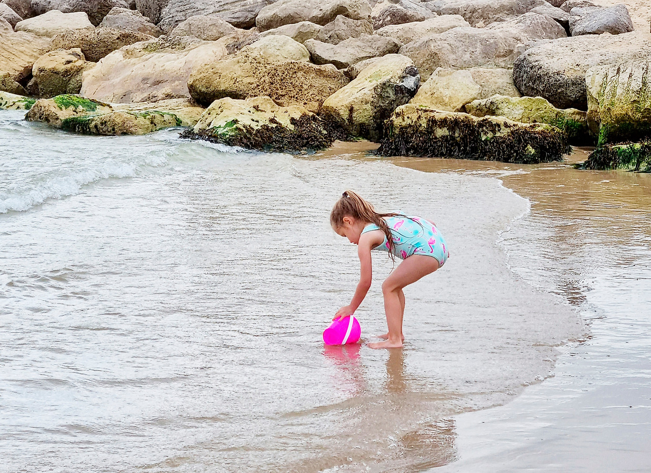 아이들은 내가 통제할 수 없는 거리까지 바다를 향해 들어가 버렸고, 모래사장에 남아 눈으로 아이들을 쫓으며 나도 신발을 벗고 바닷물에 발을 담가 보았다. 물이 엄청나게 차가웠다. 영국에서는 가장 남쪽에 있는 해안이지만, 그래도 위도가 높은 영국 바다의 수온은 어쩔 수 없이 차가웠다.