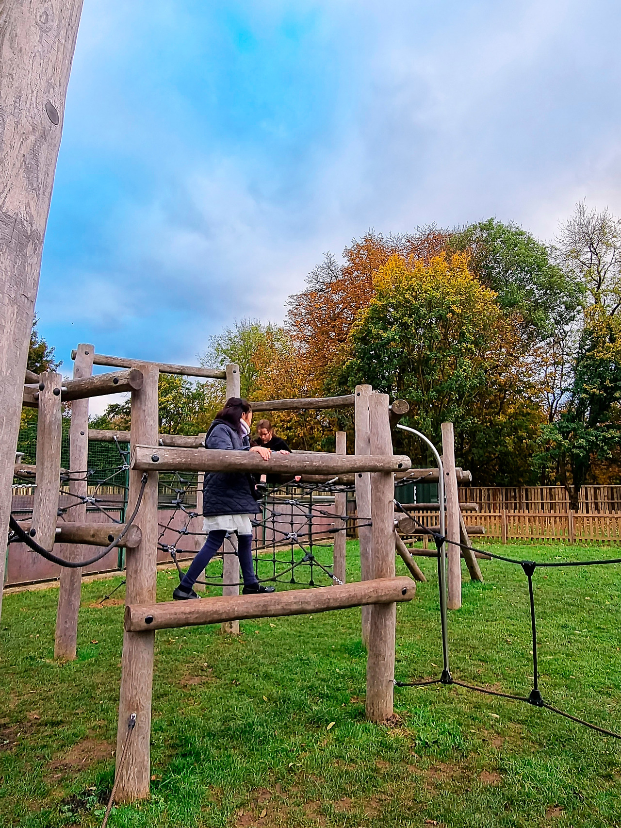 아무래도 ‘과거의 풍경’은 아이들이 즐기기엔 아직 ‘고차원의 풍경’이었는지, 놀이터를 발견한 아이들은 마을 구경을 할 때와는 비교도 할 수 없는 ‘텐션’으로 놀이터를 향해 뛰었다. 그리고 예상보다 아주 긴 시간을 놀이터에서 보냈다(거의 마을 구경에 쓴 시간에 버금갈 정도. 하하). 우리나라 아파트 단지의 놀이터처럼 창의적이고 기발한 놀이기구가 있는 것도 아닌데, 울퉁불퉁한 나무를 표면만 매끈하게 다듬어 뚝딱뚝딱 이어 붙인 것 같은 놀이터에서 우리 아이들도, 영국 아이들과 또 다른 국적의 아이들도 각자의 공간을 만들어내며 즐겁게도 놀았다.