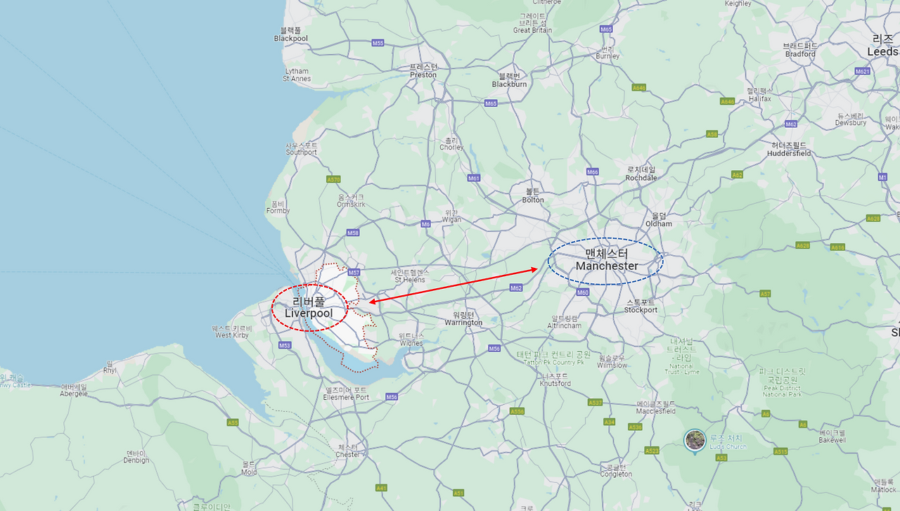 리버풀은 잉글랜드 북서쪽 해안에 자리한 바닷가 도시다. 대대로 어업에 의존했던 작은 어촌 마을 리버풀은 18~19세기 영국의 산업 혁명과 함께 중요한 항구 도시로 거듭났다. 산업혁명의 중심인 ‘맨체스터(Manchester)’와 지리적으로 가까운 리버풀은 내륙인 맨체스터와 철도로 연결되어, 맨체스터의 생산물을 수출하고 원자재를 수입하는 핵심 무역항이 된 것이다.
