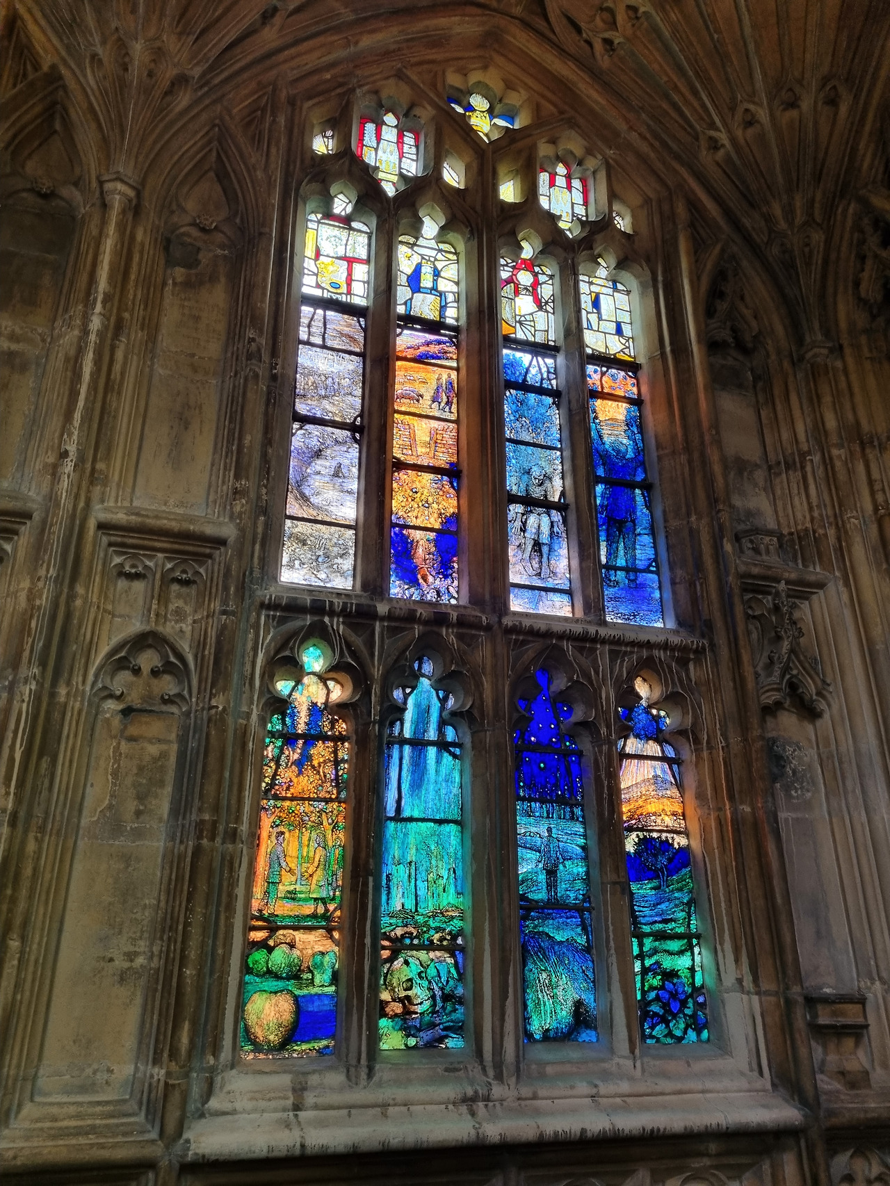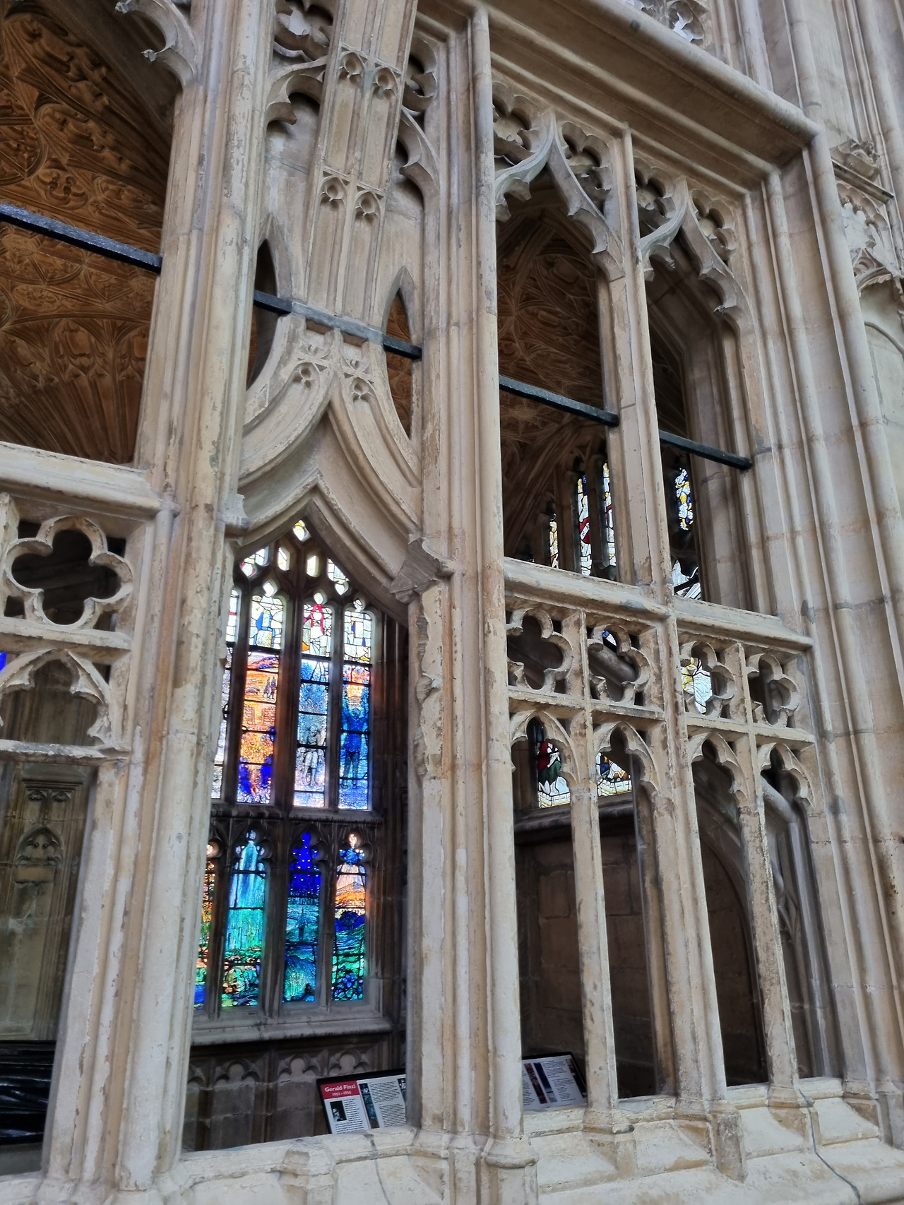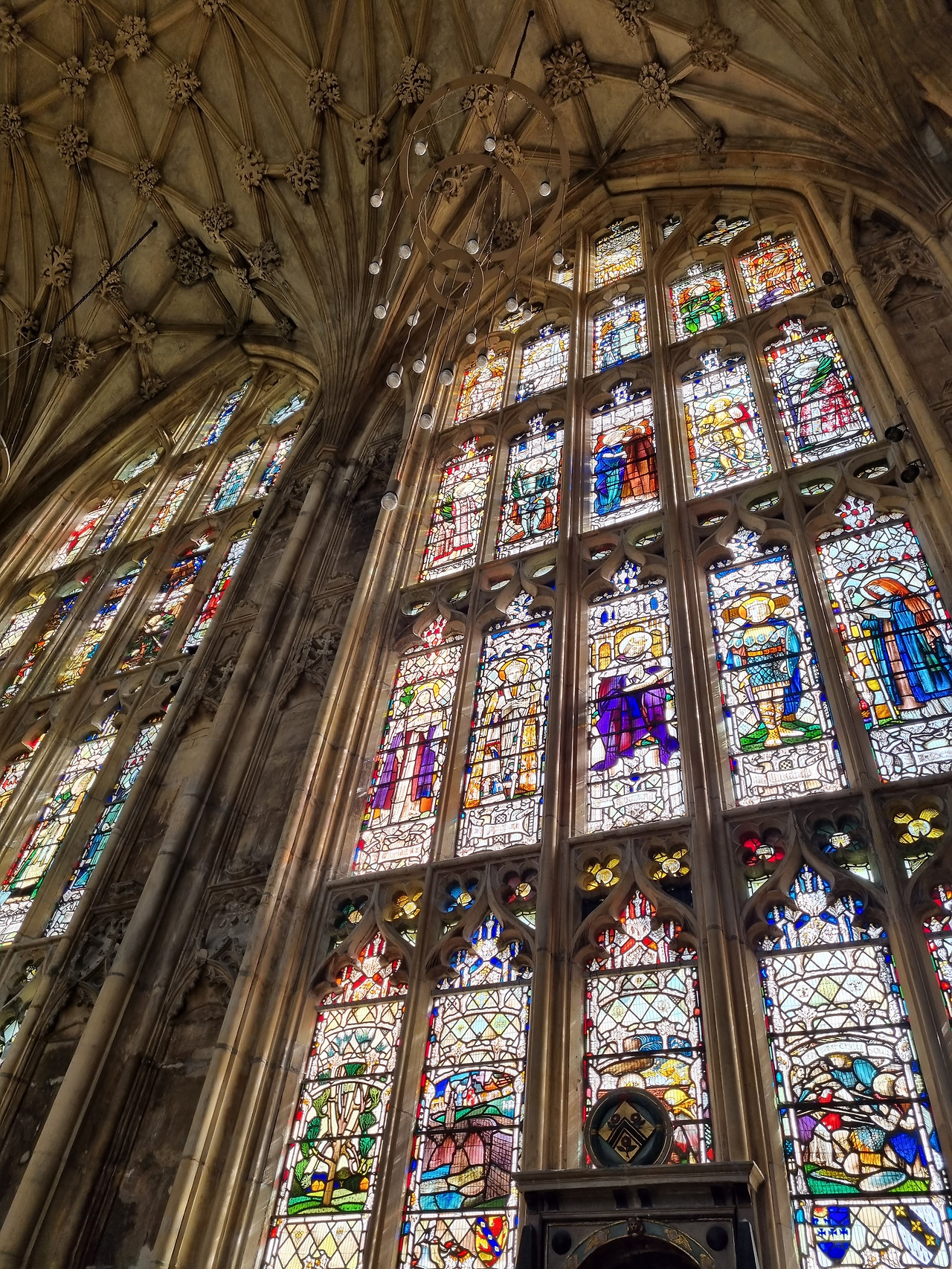 첨탑과 함께 또 하나의 고딕양식의 특징인 스테인드 글라스가 벽면을 따라 쭉 이어져 있었다. 운이 좋게도 우리가 방문한 날의 날씨가 화창하여, 유리창에 밝은 햇살이 내렸다. 덕분에 더욱 아름답게 보이는 스테인드 글라스는 상당한 규모와 풍부한 그림들로 글로스터 대성당의 자랑거리라고 했다.