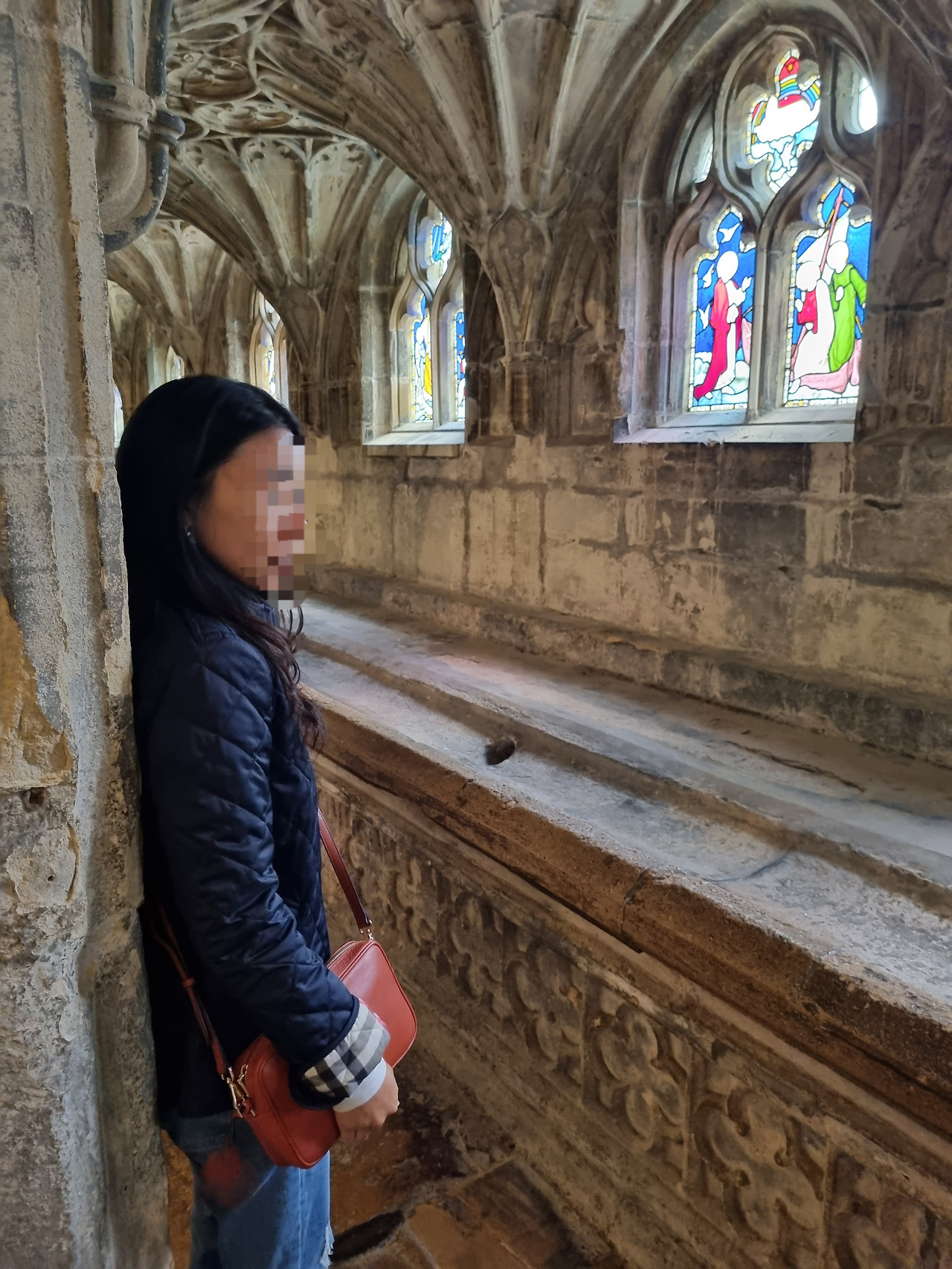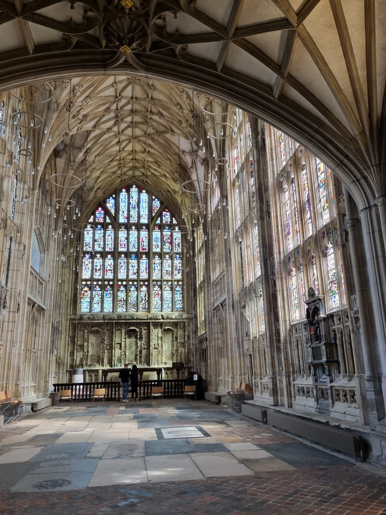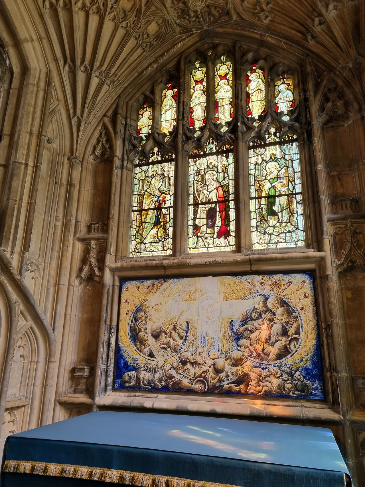 첨탑과 함께 또 하나의 고딕양식의 특징인 스테인드 글라스가 벽면을 따라 쭉 이어져 있었다. 운이 좋게도 우리가 방문한 날의 날씨가 화창하여, 유리창에 밝은 햇살이 내렸다. 덕분에 더욱 아름답게 보이는 스테인드 글라스는 상당한 규모와 풍부한 그림들로 글로스터 대성당의 자랑거리라고 했다.