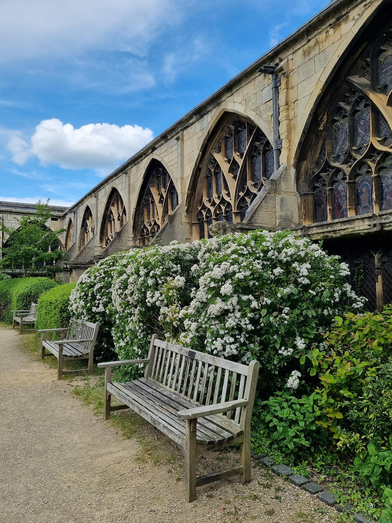 성당은 메인 건물과 뒤편의 건물로 나뉘어 지는데 그 가운데 정원이 있었다. 오래된 작은 나무문을 통과해 정원으로 나서는 기분이 ‘비밀의 화원’에 들어서는 느낌이었다. 영국 어디에 가나 인심 좋게 펼쳐진 잔디밭과 5월의 흰 꽃이 무리 지어 활짝 핀 성당 안뜰 정원 벤치에 앉아 잠시 쉬었다.