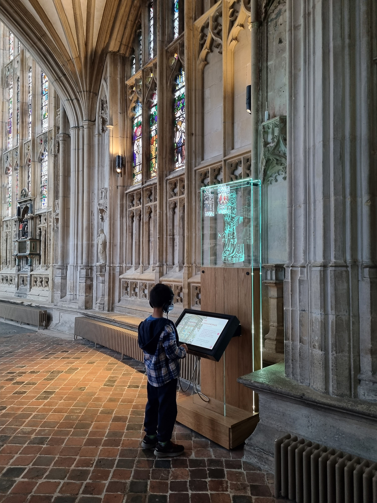 깊숙하게 이어진 성당 내부 벽을 따라서 걸으면 곳곳에 성서 속 인물을 기리는 동상이 있고, 특별히 마련된 기도 공간 등이 있다. 공간마다 어떤 곳인지 안내판이 있어서 종교에 대해 지식이 없는 사람도 관심이 있다면 알 수 있도록 설명이 잘 되어 있는 것에서 방문자들에 대한 글로스터 대성당의 섬세함이 느껴졌다. 입구에 들어설 때도 다른 성당들보다 더 다양한 언어, 특히 한국어로 된 안내책자가 마련된 것이 인상적이었는데(물론 무료로 배포하는 것은 아니고 발전기금처럼 조금의 돈을 내야했지만), 군데군데 배치된 안내판과 함께 다양한 방문자들에게 더 다정하게 다가가고자 하는 성당의 마음 같아서 흐뭇했다.