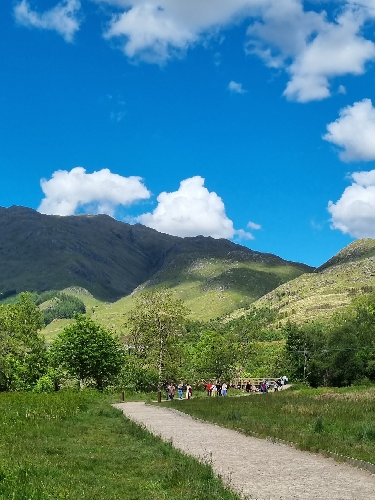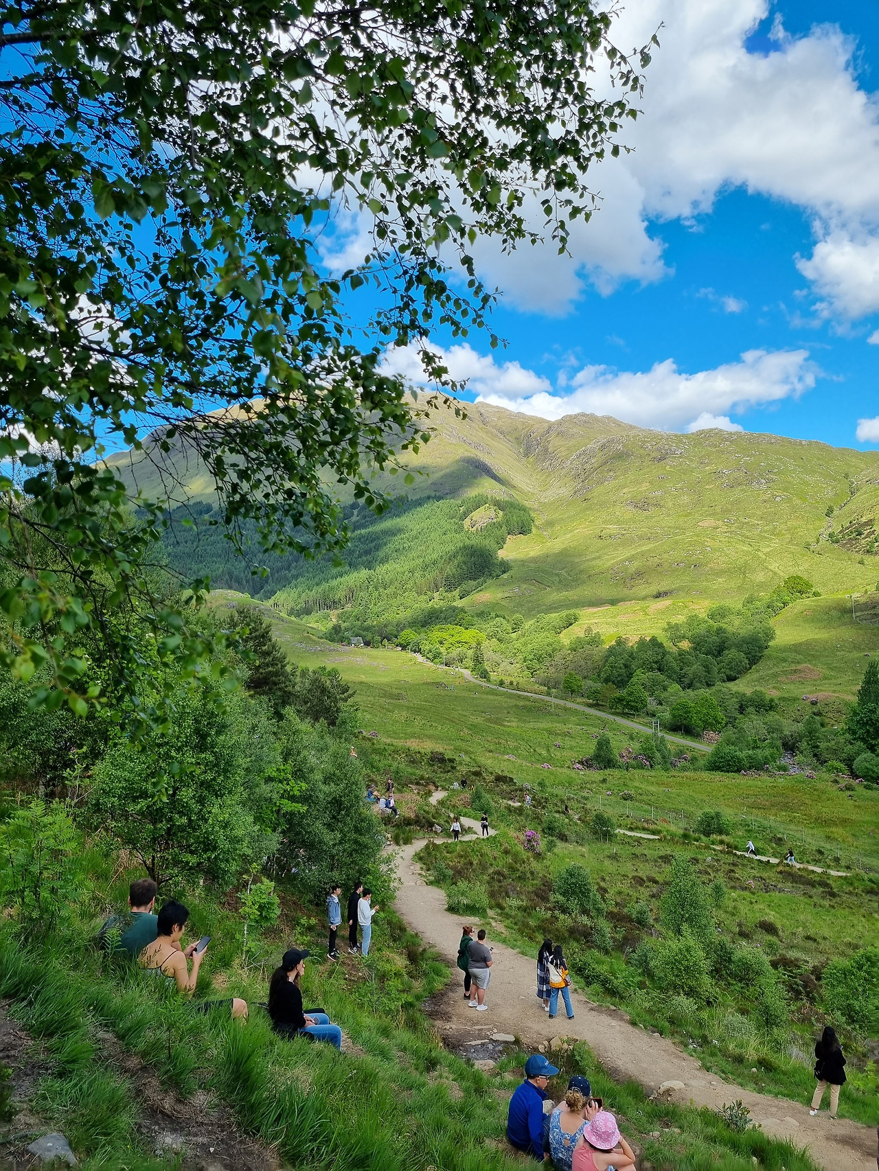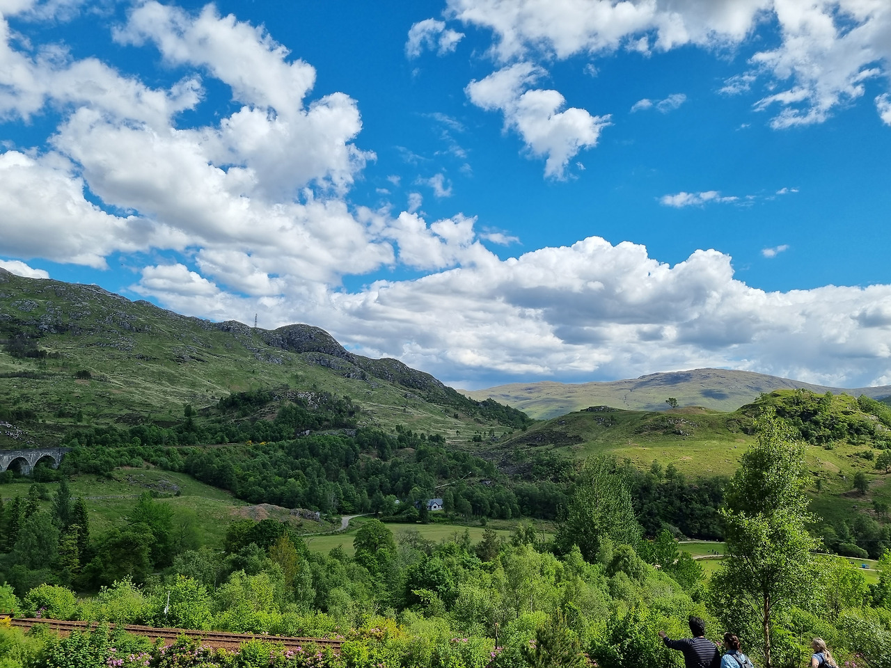 아직 사람들이 많이 오지 않은 뷰포인트에서 마음에 드는 위치를 선점하고 핸드폰 카메라로 찍은 고가교 사진이 구름그늘 때문에 아쉽다 생각할 때쯤, 내 생각에 동의한 날씨의 신이 명령한 듯 구름이 옆으로 비켰다. 태양의 조명이 가득 내리쬐는 글렌피넌 고가교의 풍경은 그야말로 아름다운 풍경이자 영화같은 장면이었다. 철교 주변으로 여러 개의 산봉우리들이 이루는 물결도 장관이었다. 감탄을 하며 찍고 찍고 계속 찍은 사진은 지금 봐도 정말 아름답고, 이 풍경을 직접 내 눈으로 보았다는 것에 때때로 가슴이 벅차오른다.
