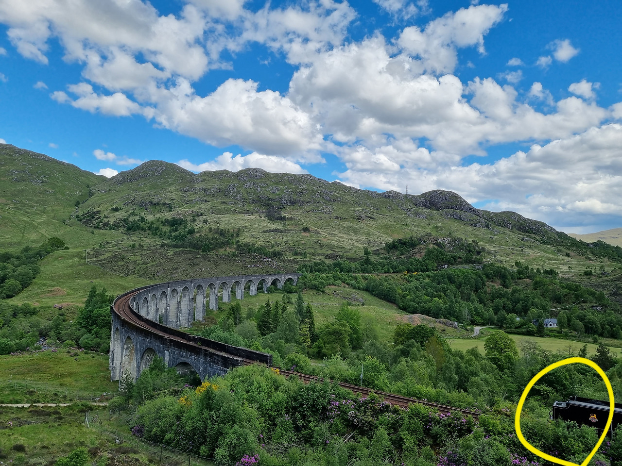 글렌피넌 고가교에서 호그와트 익스프레스가 달리는 장면을 눈에 담을 단 한번의 기회! 남편은 영상을, 나는 사진을 촬영하기로 업무분장까지 마쳤다. 저 멀리 선처럼 보이는 철길 위로 ‘미약하게’ 등장해 우리를 향해 점차 ‘창대하게’ 달려올 기차를 상상하니 가슴이 두근거리기까지 했다. (기차 하나 보는 걸로 너무 유난한 것 아닌가 하겠지만, 직접 가서 보면 설렘과 기대가 폭발한다.)