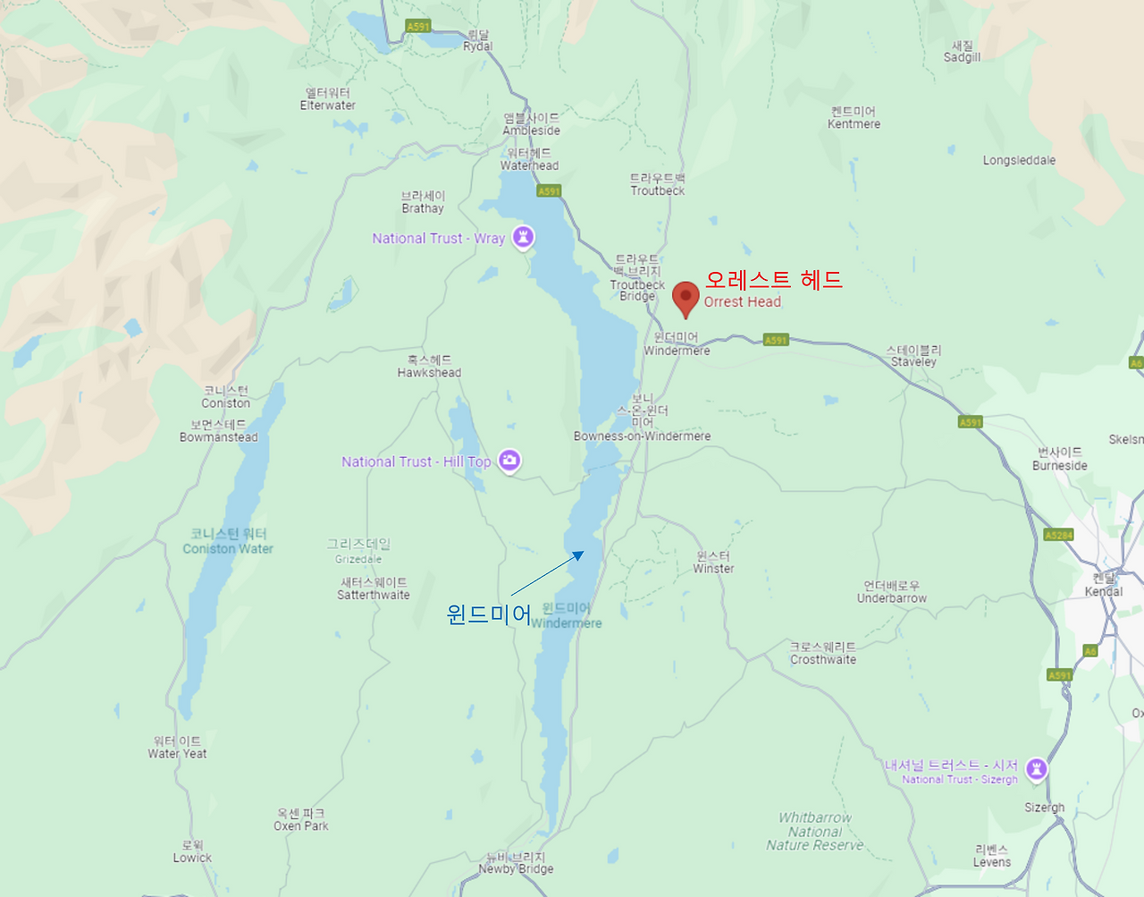 오레스트 헤드는 윈드미어의 가운데 지점에서 조금 북쪽에 위치한 언덕으로, 윈드미어역에서 20~30분 정도 언덕 길을 오르면 되는데 길이 잘 닦여 있어 아이들도 쉽게 오를 수 있었다.