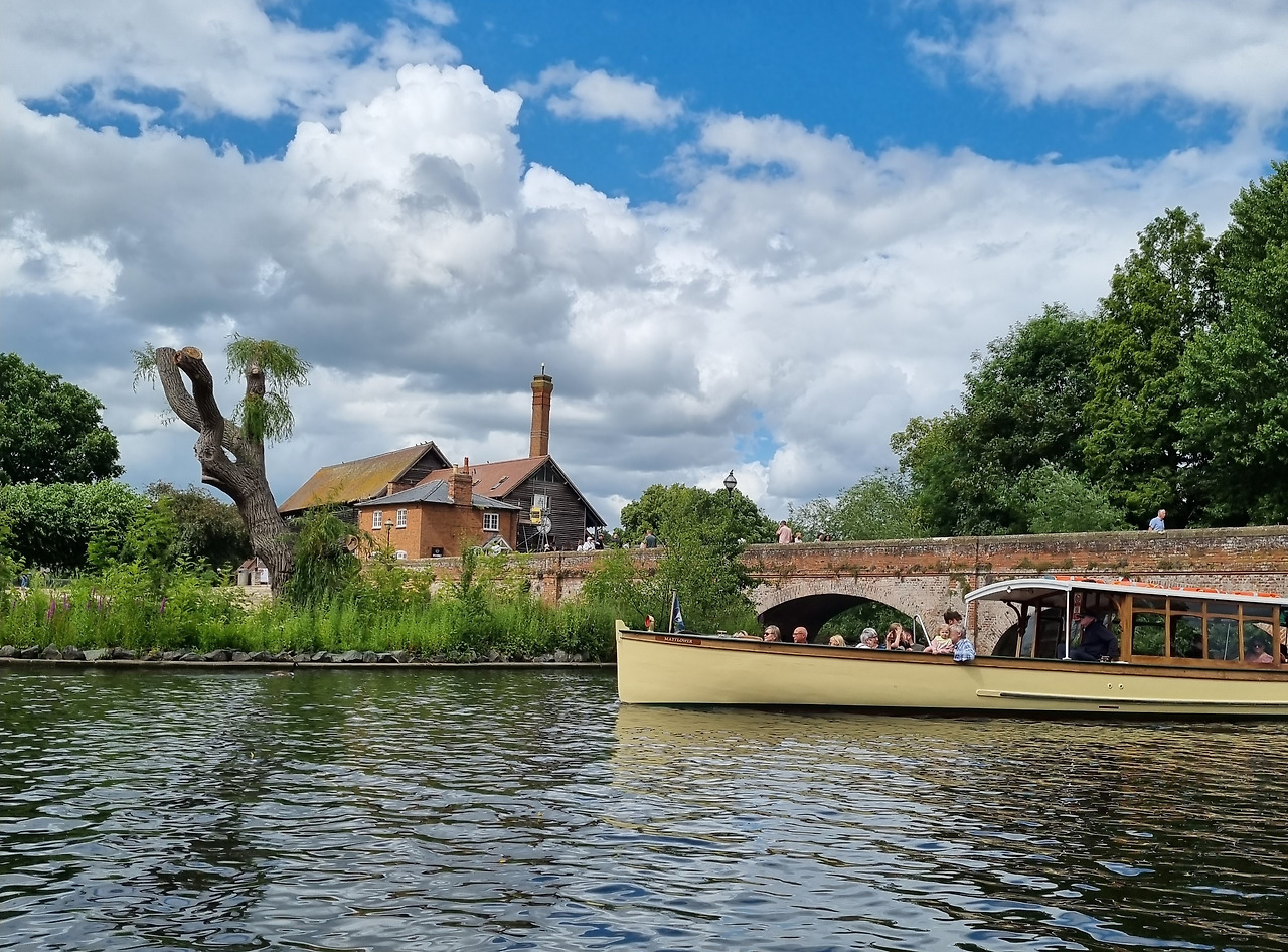 셰익스피어의 교회를 지난 후 배는 방향을 돌려 반대 방향으로 흘렀다. 붉은 벽돌색의 다리(브리지 풋, Bridge Foot)가 파란 하늘과 초록의 나무, 짙은 녹색의 강물 사이에서 조화롭게 어울렸다.