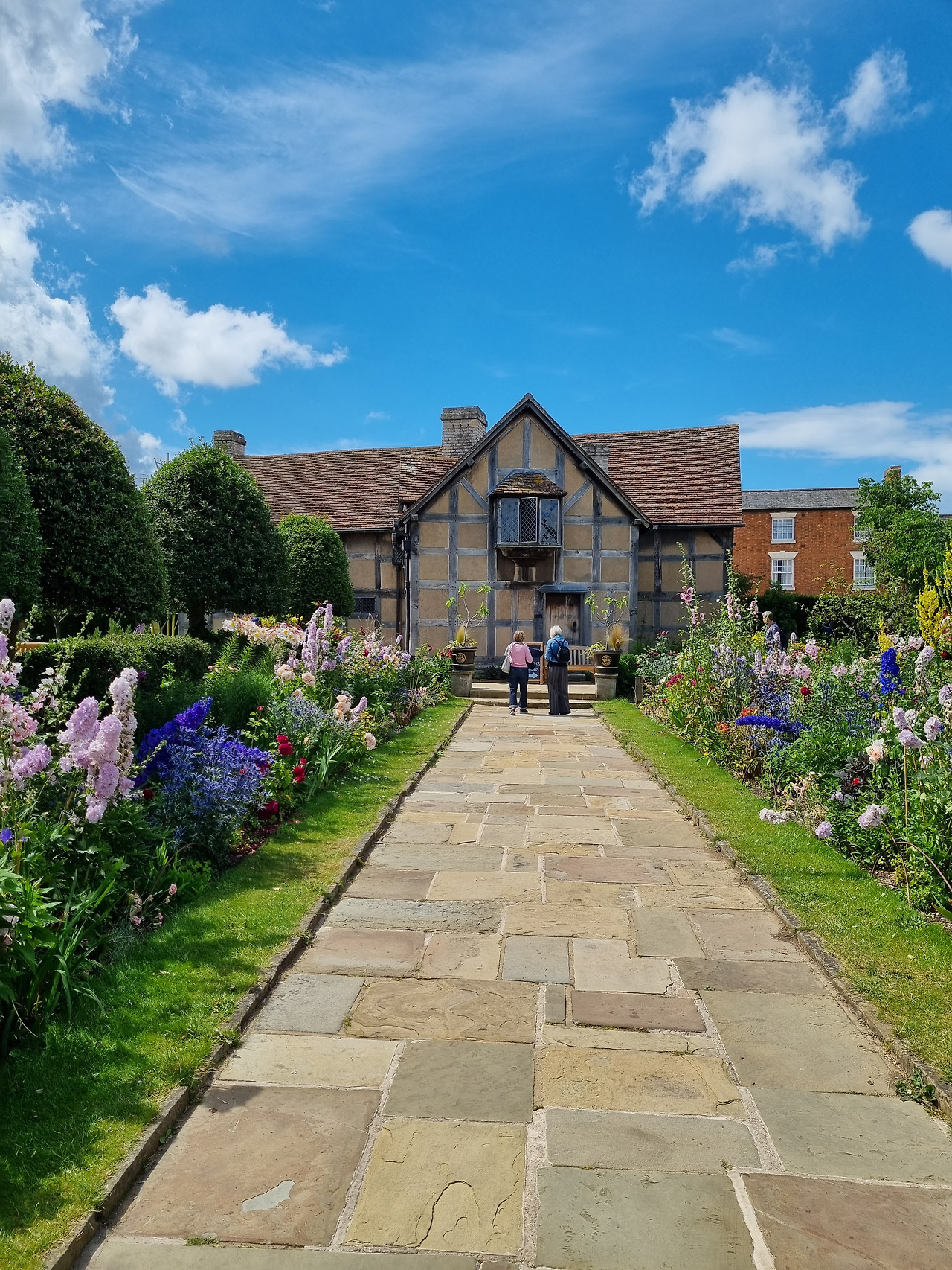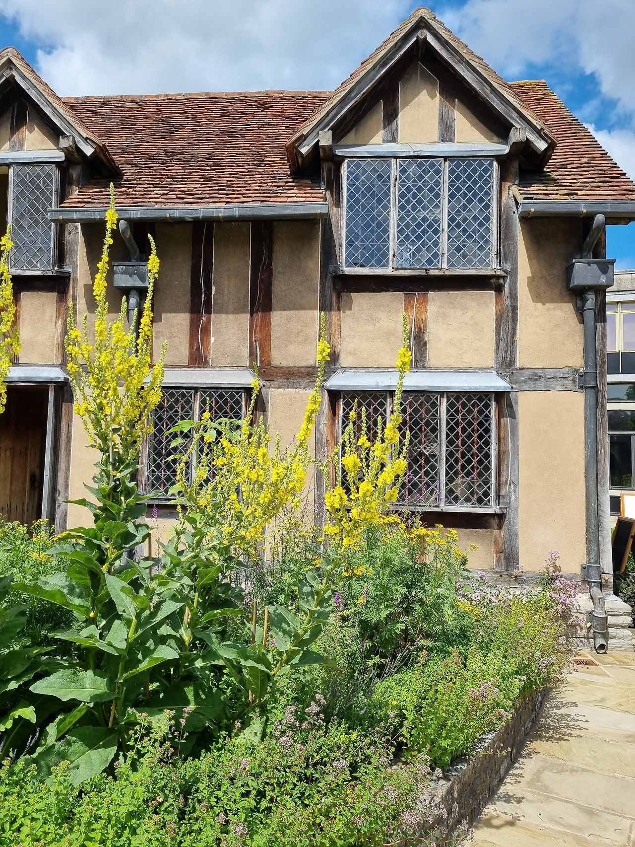 볕이 잘 드는 평지, 시내의 중심가에 위치한 셰익스피어의 집은 첫눈에도 밝고 넉넉한 인상을 풍겼다. 집 앞의 화려한 정원 때문에 더 그렇게 보였을 수 있겠다. 정원의 꽃이 대단했는데 마치 꽃 박람회에 온 것처럼 다양한 꽃들이 집 건물로 이어지는 길 양쪽에 가득 피어 있었다. 레이크 디스트릭트에서 본 비아트릭스 포터의 집이 자연 속에 있는 느낌이었다면, 셰익스피어의 집은 소위 말해, 도회지 느낌! 하하. 꽃과 자연을 사랑하는 손길이 많이 닿은 정성스러운 정원이었다. (시대도 지역도 다른 비아트릭스 포터를 계속 얘기하는 건 바로 직전에 간 여행이기도 하고, 마침 ‘작가의 집’이라는 공통점이 있어서 나도 모르게 절로 비교하며 감상하게 됐다.)