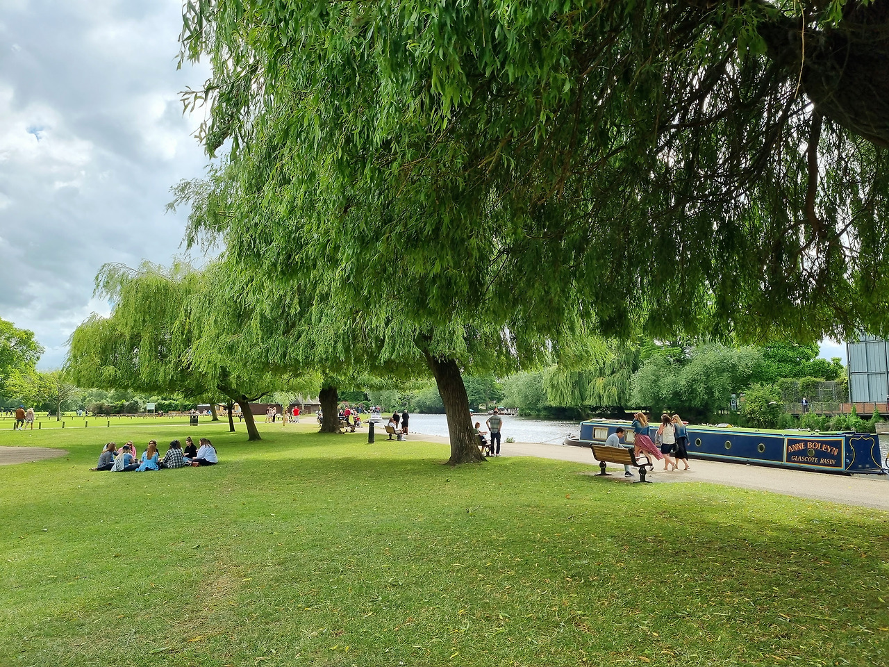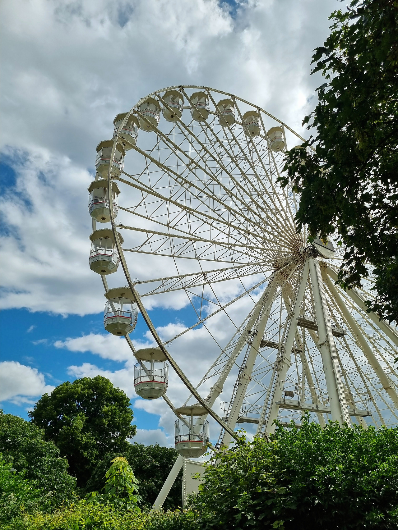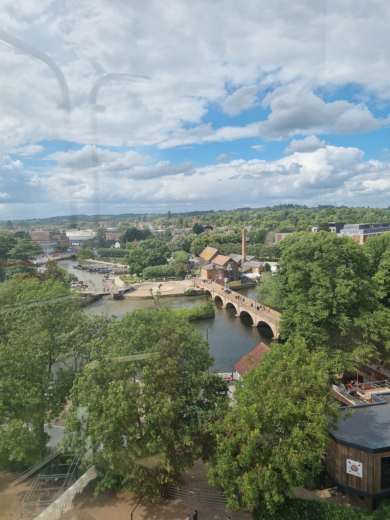 우리도 셰익스피어처럼 붉은 다리를 건너 강의 반대편으로 갔다. 강물넓은 잔디밭은 공원, 그보다는 조금 더 특별한 유원지 느낌이었다. 강물을 따라 쭉 마련된 벤치에는 앉아서 에이번 강 뷰를 즐기는 사람들이 있었다. 벤치 위로 길게 늘어뜨린 수양버들이 보는 것만으로 싱그럽게 느껴졌다. 유원지에서 빼놓을 수 없는 즐거움, 대관람차.