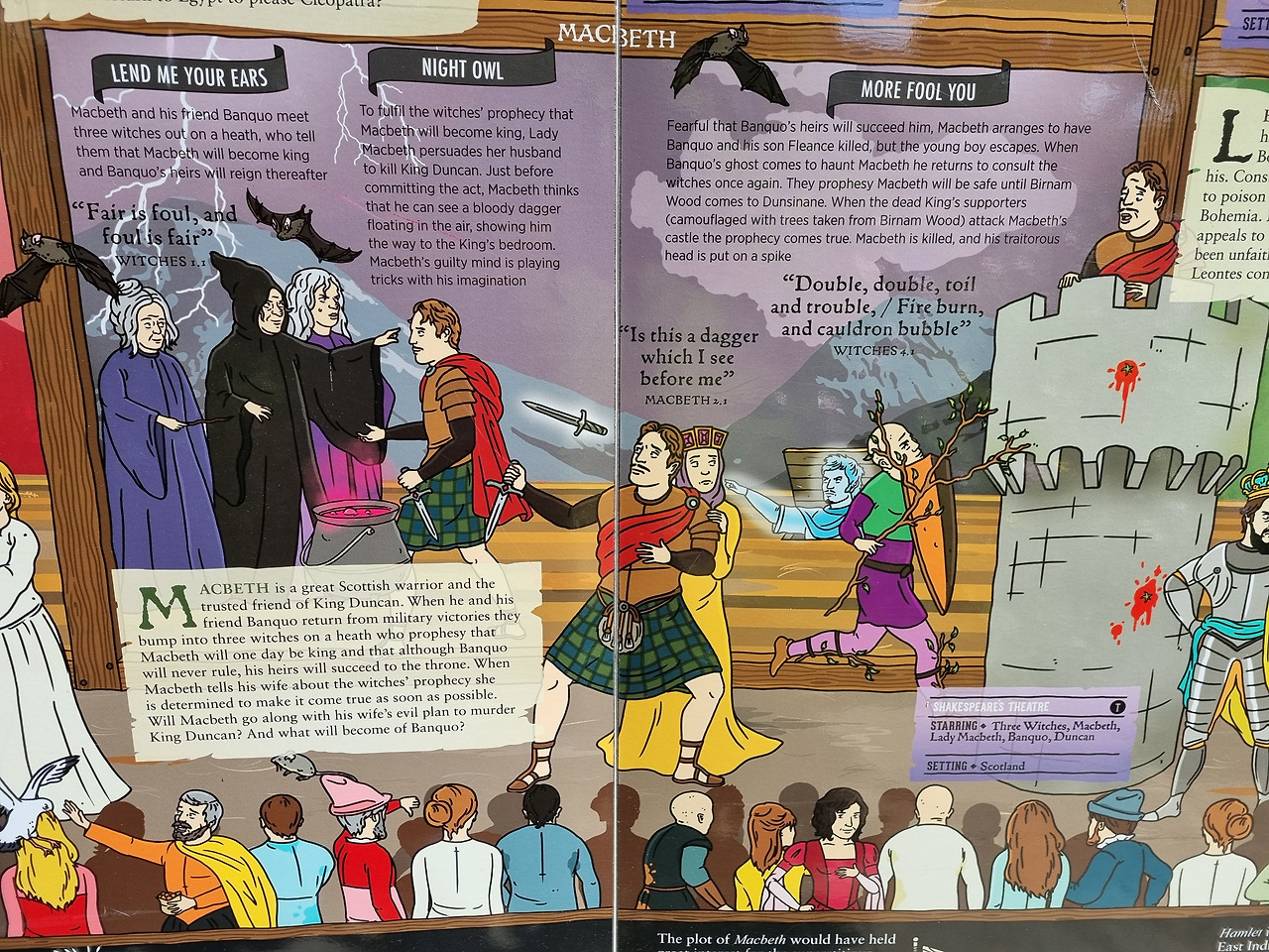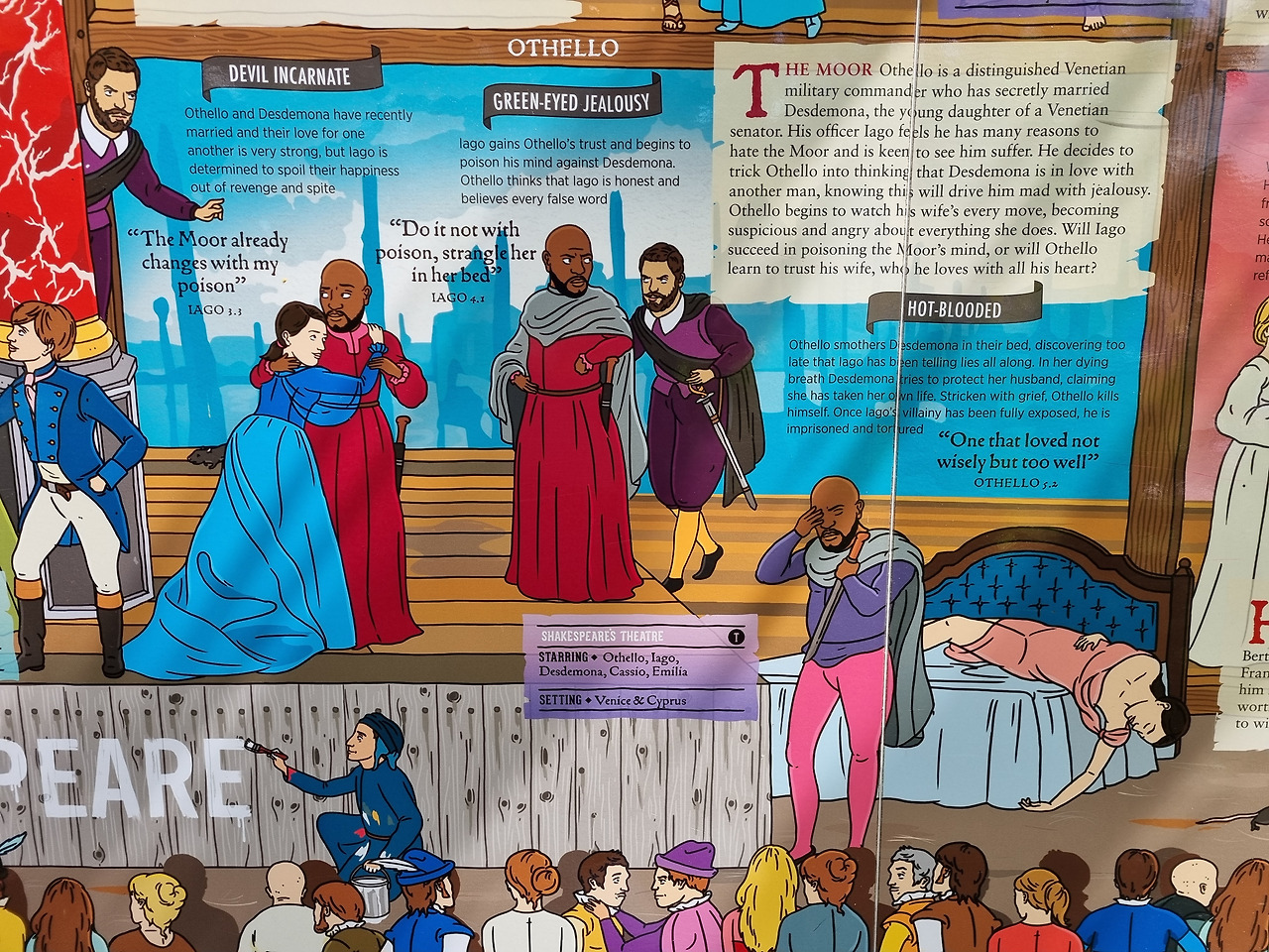 전시 공간을 지나 밖으로 나오면 셰익스피어 작품 속 명장면들을 그림으로 구현한 월(Wall)도 있다. 햄릿, 오셀로, 맥베스, 리어왕 등등. 잘 모르지만 이미 알고 있는 작품들이었다.