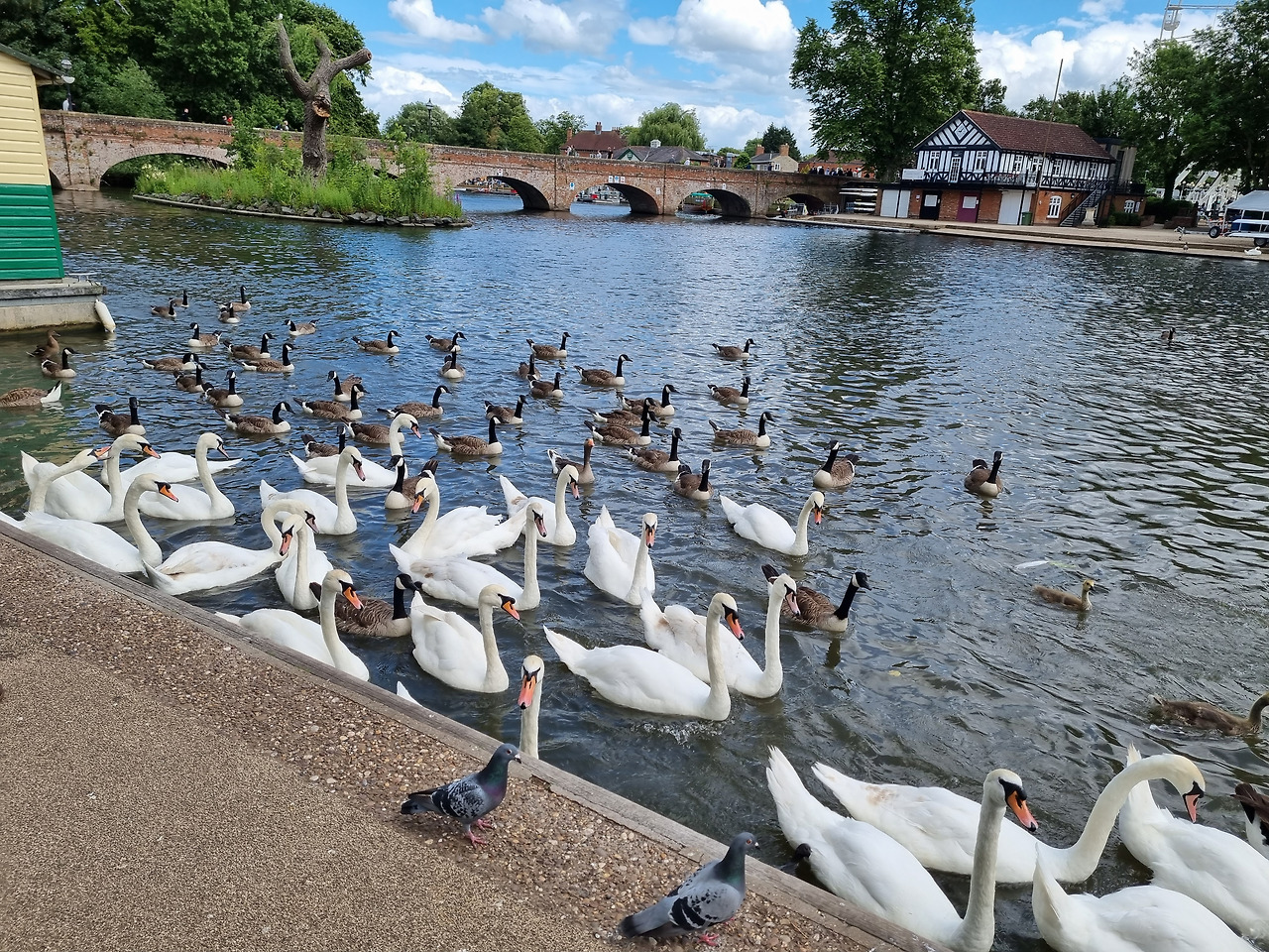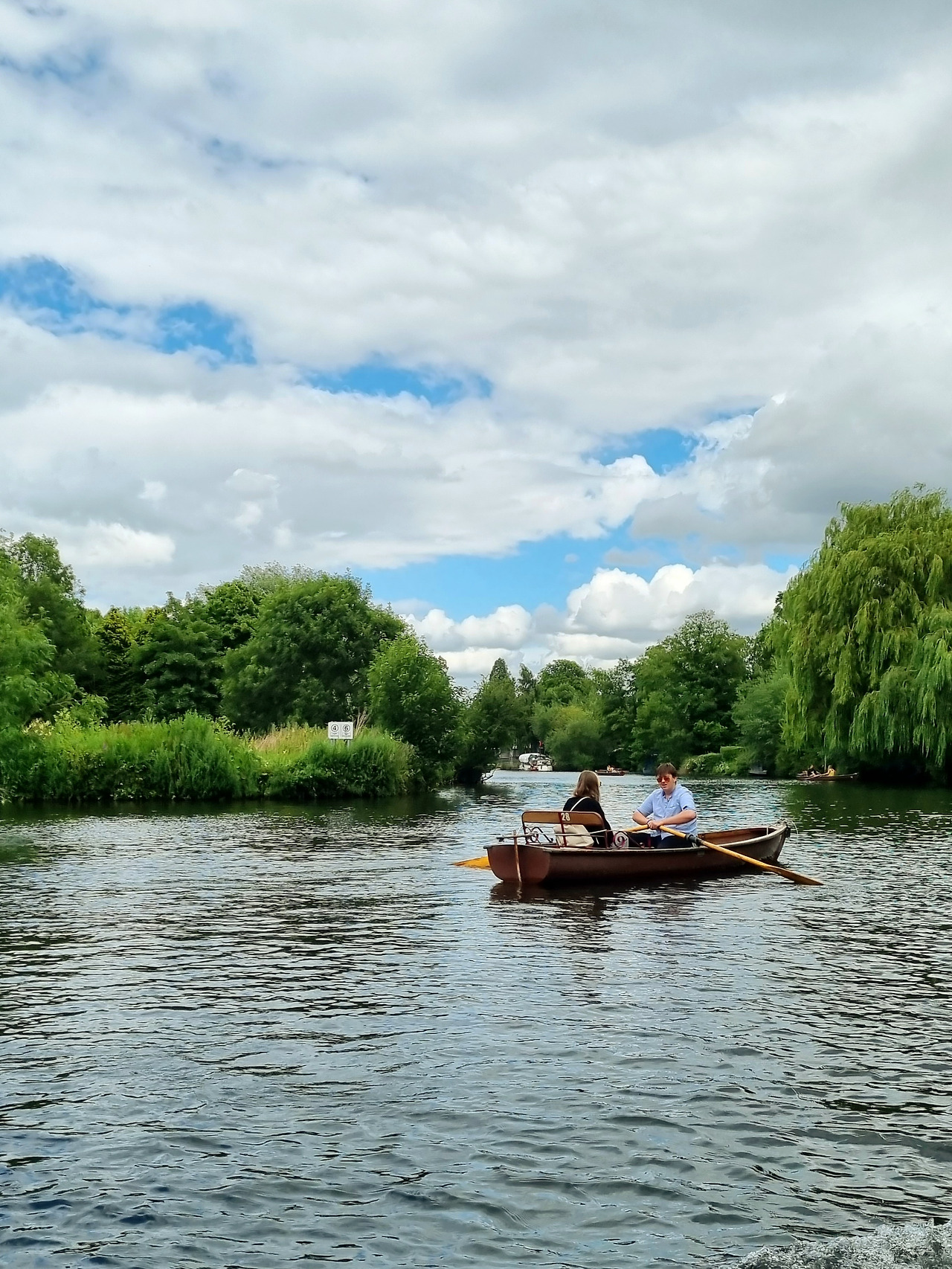 역사적이고 문학적인(?) 다리 아래를 지나자 노를 젓는 작은 배들이 더 많이 등장했다. 각자의 속도로 에이번 강의 오후를 즐기는 풍경이 한가롭고 즐거웠다.