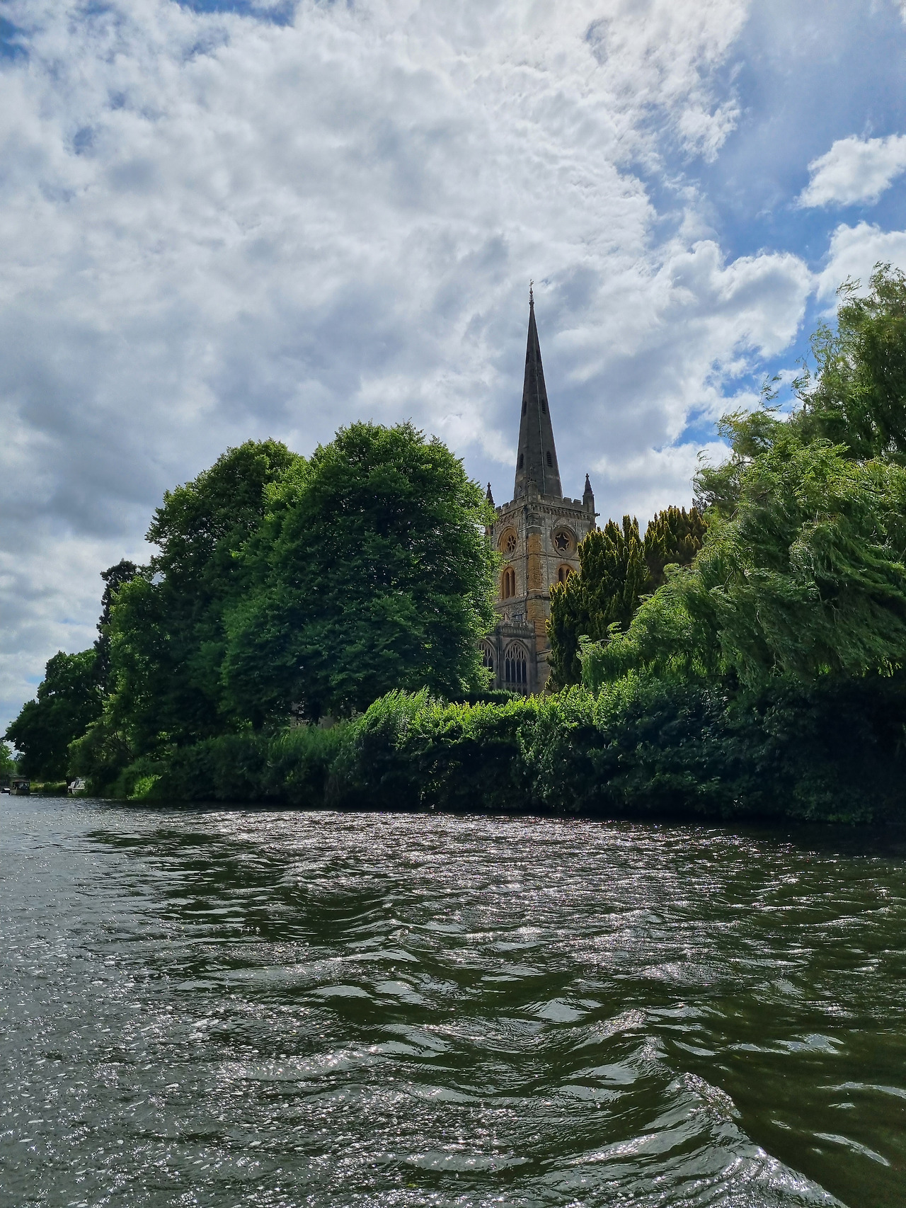 강변의 나무 수풀 너머로 교회 첨탑이 보였다. 셰익스피어가 태어나 세례를 받고, 또 묻힌 교회(Holy Trinity Church)라고 했다. 셰익스피어도 에이번 강에서 이렇게 배를 타고, 이렇게 아름다운 풍경을 바라보며 수많은 문장을 강물에 띄웠을까?