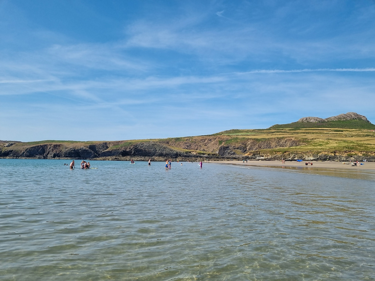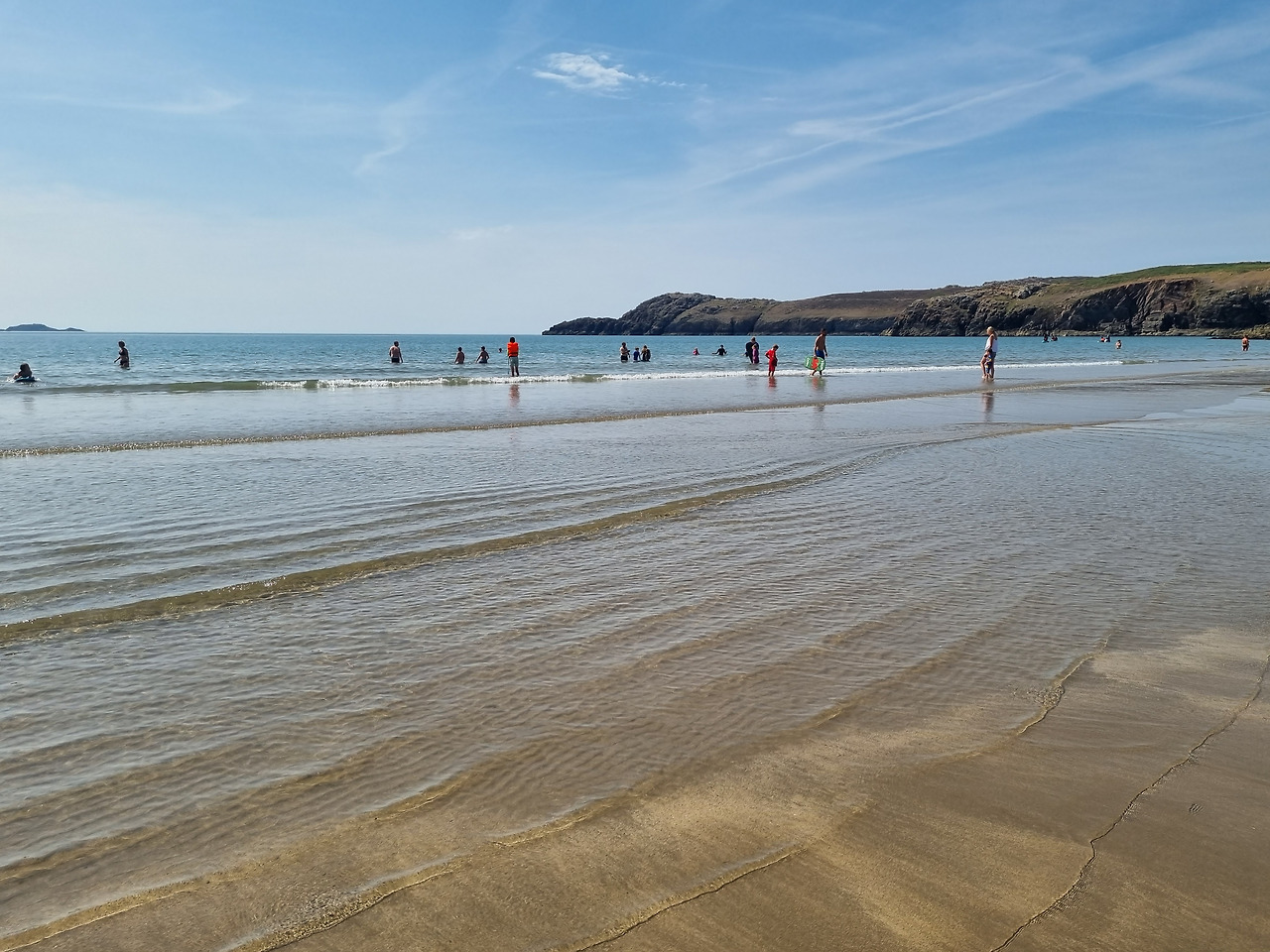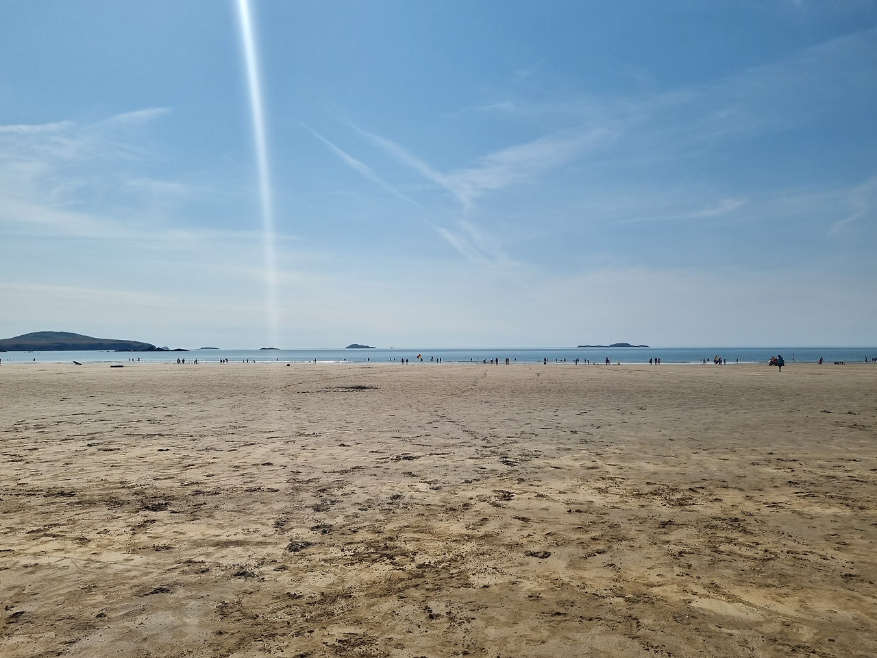 '웨일즈에서 해수욕을 하기에 좋은 해변'으로 영국 현지인의 추천을 받아 웨일즈 서쪽 끝까지 달려가 만난 화이트샌드 해변은 그 이름처럼 넓고 깨끗한 모래사장이 광활하게 펼쳐져 있었다.