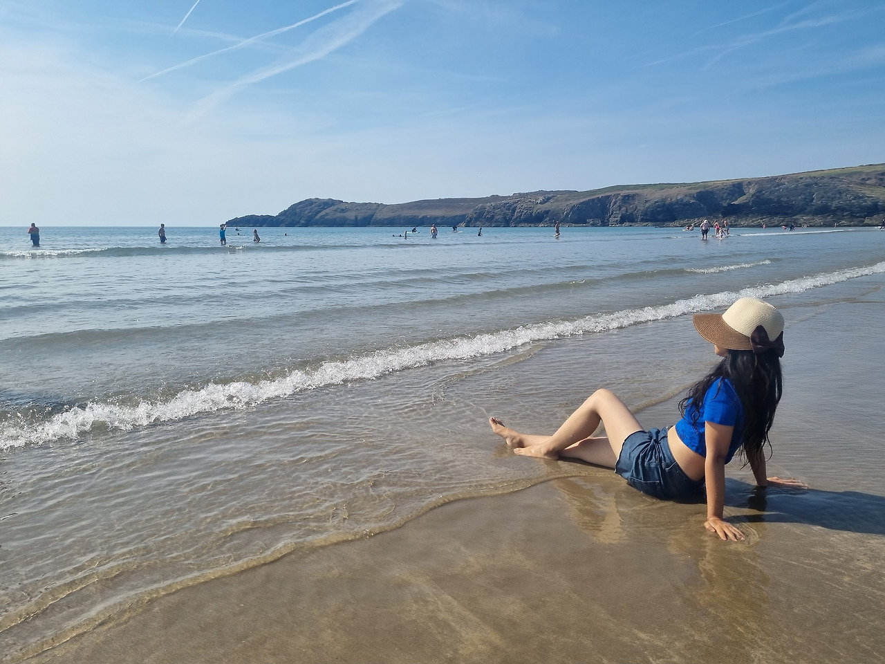 바다와 모래사장 사이, 바닷물이 얕게 깔리는 지점에 다리를 뻗고 앉아 웨일즈의 바다를 즐겼다. 다리와 엉덩이 아래로 부드럽게 밀려와 찰랑이는 파도에 한여름의 열기가 식었다. 하얗게 부서지는 파도의 청량함을 맛보지는 못했지만, 뜨겁고, 시원하고, 한가로운, 딱 좋은 여름바다였다.