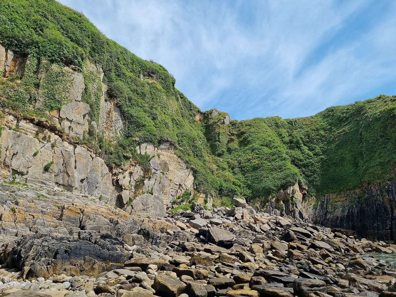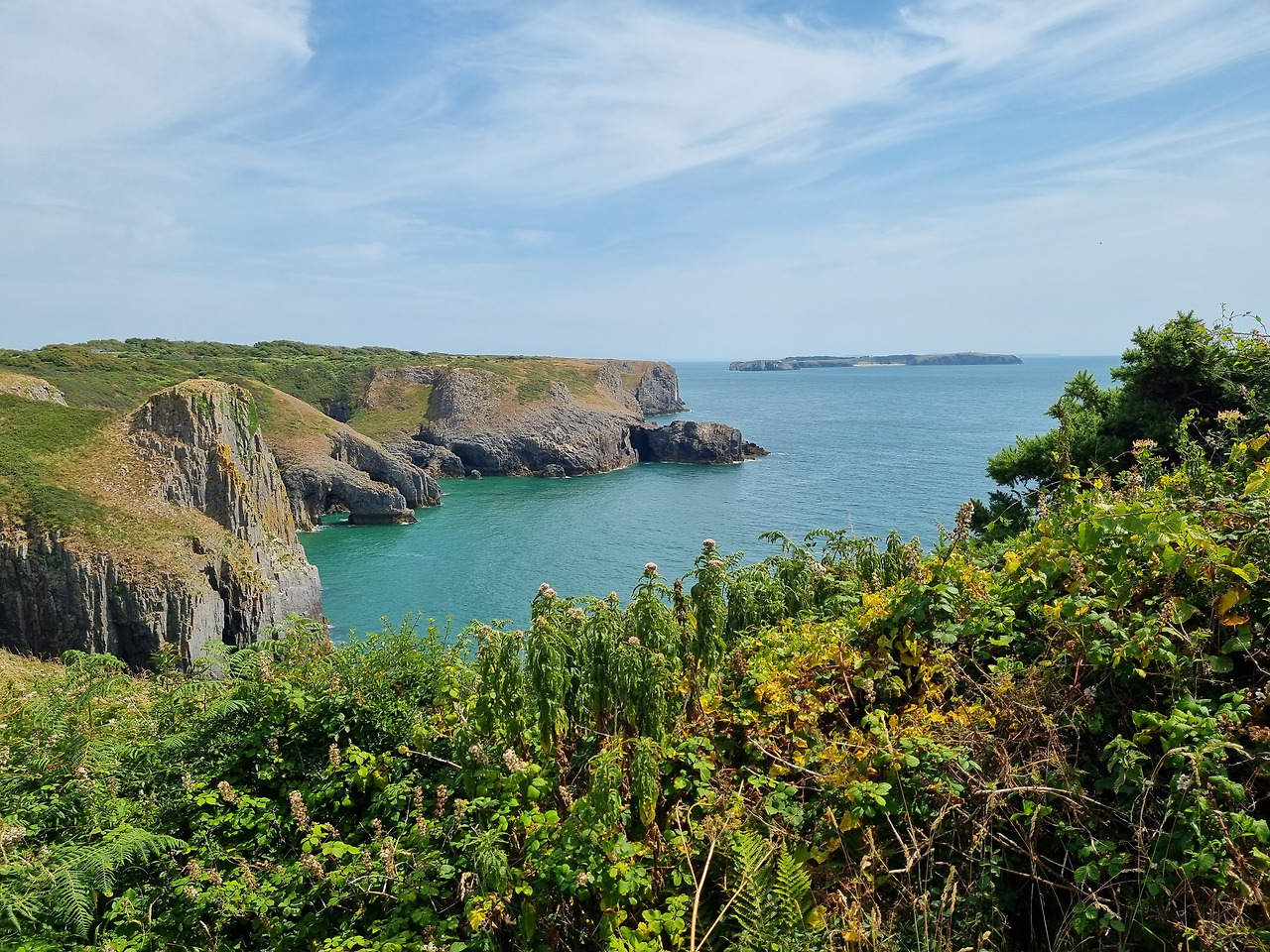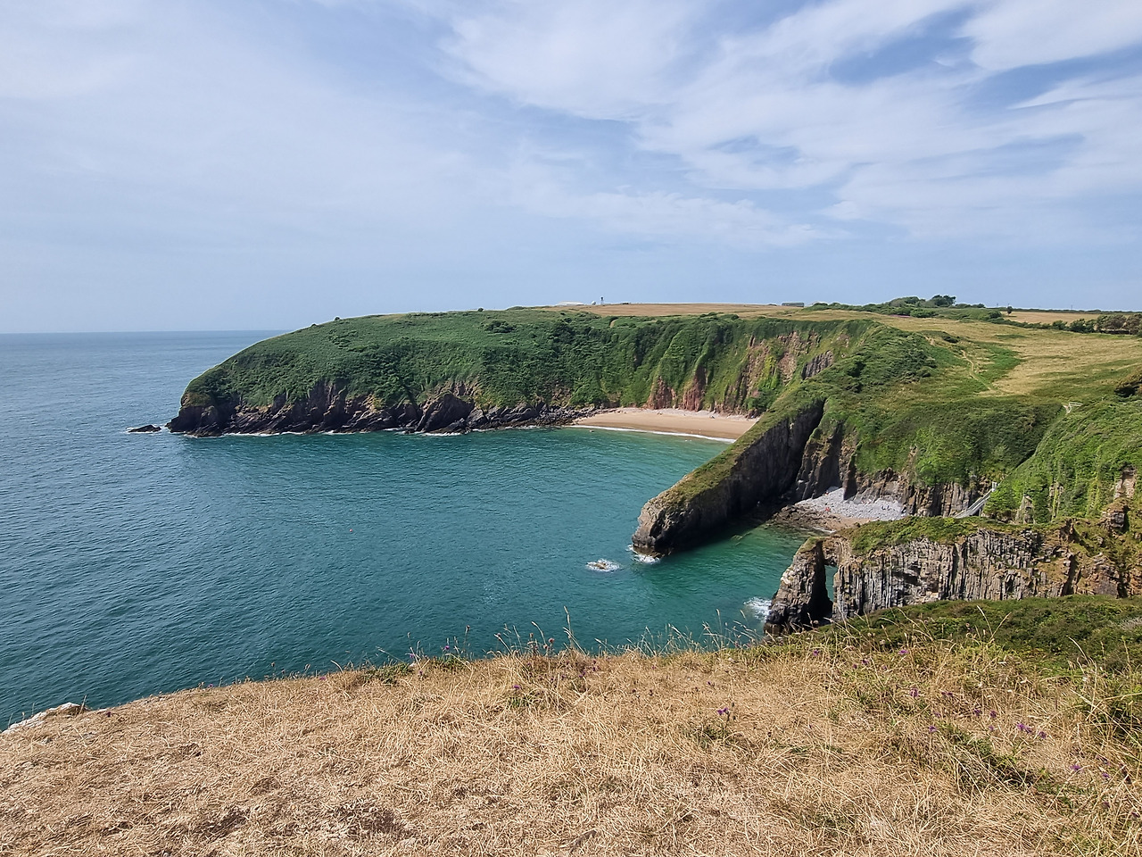처치 도어 코브를 찾아왔지만, 내 취향은 코브 양 옆으로 쭉 이어진 해안 언덕들. 화이트샌드 해변에서는 양쪽에서 바다를 편안하게 품어주던 해안 언덕이 이곳 ‘펨브룩셔 코스트 패스’ 위에서는 아래로 내려다 보였다. 웨일즈 남부 해안을 따라 바다와 맞닿아 있는 이 해안 언덕은 정확히는 해안 절벽이겠으나 부드럽고 완만한 절벽의 실루엣이 언덕 혹은 능선을 연상시켰다.