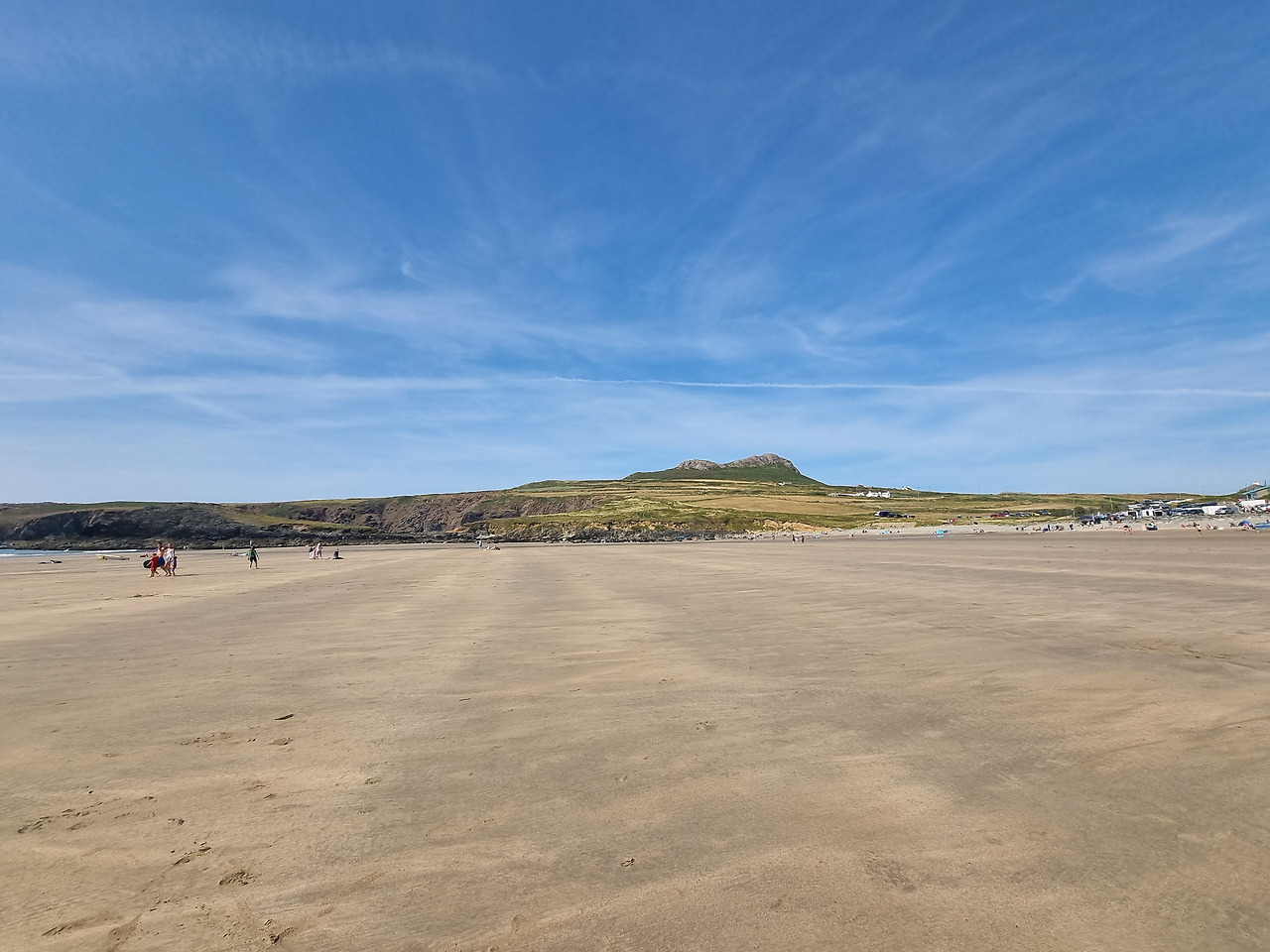 또한 웨일즈어로는 이 해변의 이름이 ‘포쓰마우르(Porthmawr)’. ‘크고 넓은 만’라는 뜻이다. 화이트샌드 해변에 도착했을 때 처음 느낀 감상은 영어식의 ‘화이트샌드’보다 이 웨일즈식의 ‘포쓰마우르’에 더 가까웠다.