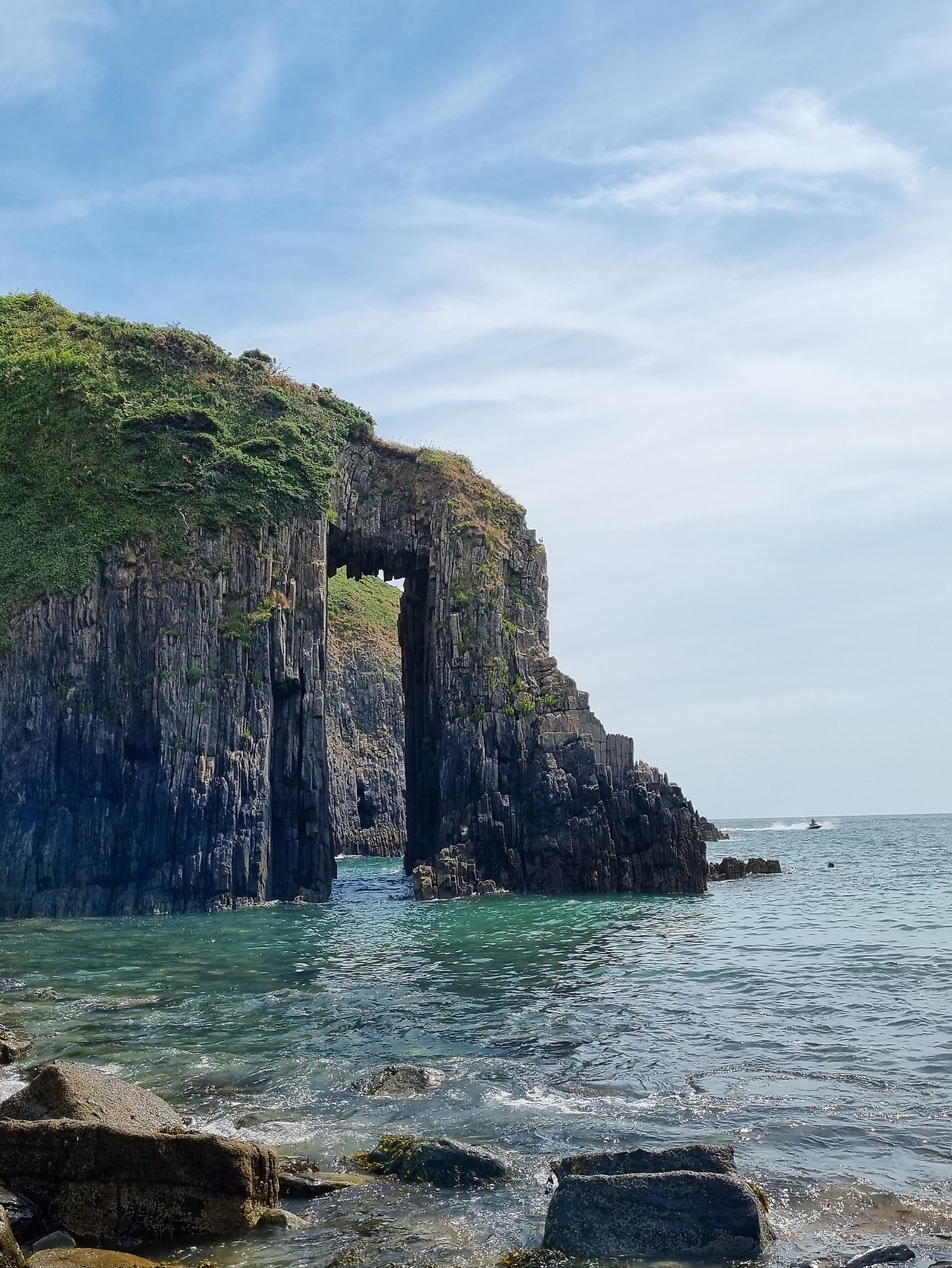 웨일즈 남서부 펨브룩셔 해안선을 따라 형성된 긴 하이킹 코스인 ‘펨브룩셔 코스트 패스(Pembrokeshire Coastal Path)’의 일부 구간에 위치한 ‘처치 도어 코브’는 해안 절벽에 자연이 만든 거대한 '문(Doors)’ 모양의 자연 아치가 있는 자갈 해변이다.
