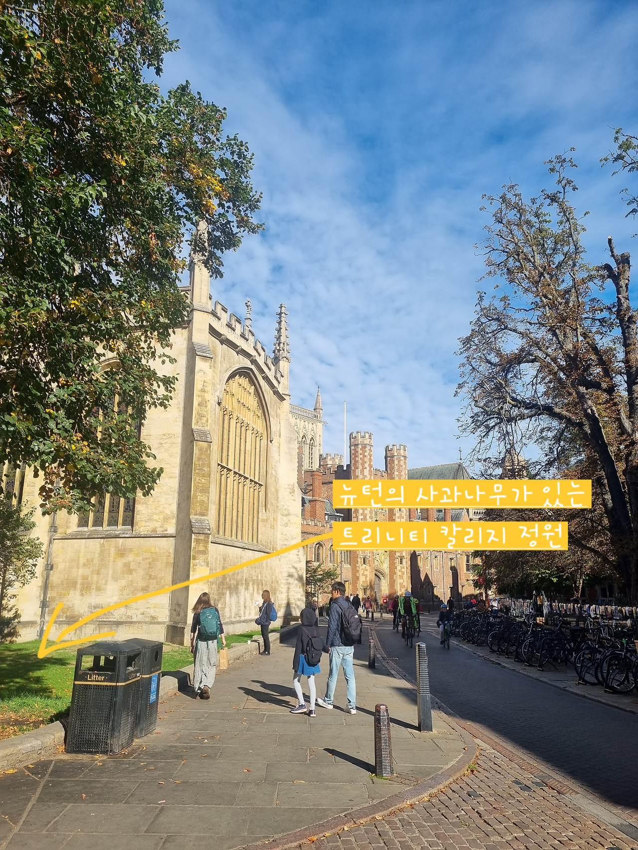 도로 아래 얕은 연석이 경계가 되어 트리니티 칼리지 정원과 일반 도로를 구분하고 있었다. 앞서 내가 말한 케임브리지의 개방적 구조가 바로 이런 점을 말한다. 덕분에 트리니티 컬리지 안으로 들어가지 않고도 사과나무 너머로 뉴턴이 실제로 거주했다는 방의 창문도 볼 수 있었다. ‘상아탑’과 ‘일상의 거리’ 사이에 높은 담장이 있었다면 이 도로는 얼마나 답답해 보이고, 뉴턴의 사과나무를 보기 위해서는 또 얼마나 줄을 섰을까. 또 한번 케임브리지의 자유로움에 반하고 말았다.
