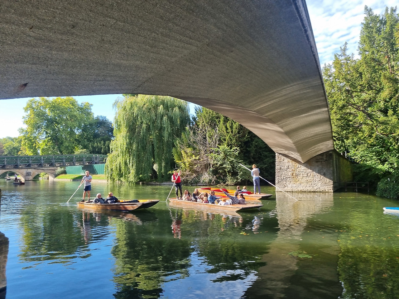 배는 계속 나아가 클레어 칼리지(Clare College)에 있는 케임브리지에서 가장 오래된 다리 ‘클레어 브리지’를 지나, 그와 대조되는 분위기의 현대적 콘크리트 다리 ‘가렛 호스텔 브리지(Garret Hostel Bridge)’를 지났다.