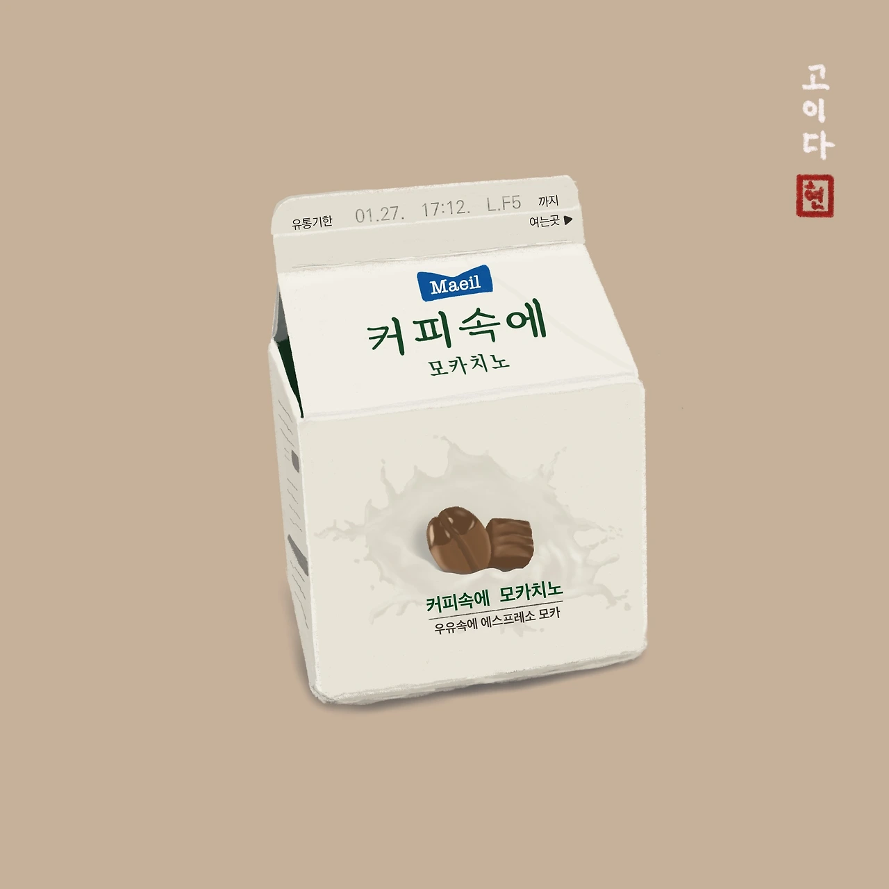 다시 내려다 본 우유곽의 앞면에는 거짓말처럼 정말로 ‘커피속에 모카치노’라는 초록색 글자가 선명히 적혀 있었다.