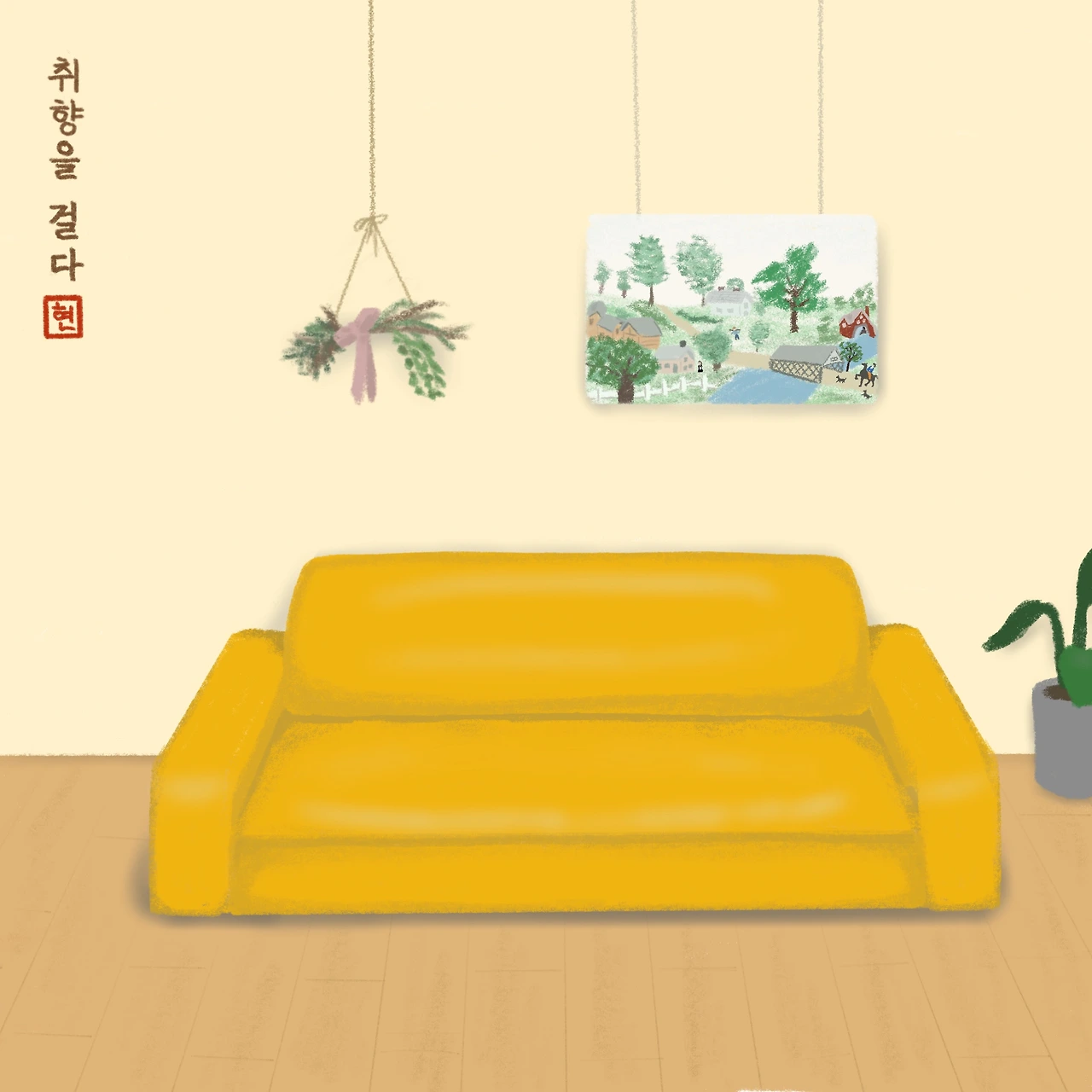 이 집에 봄에서 여름으로 그리고 가을, 겨울로 네 번의 계절이 흘렀다. 흐르는 계절마다 계절에 맞는 나의 취향을 입혔다. 그중 제일 마음에드는 것이 거실의 그림액자. 이제 마음껏 못질을 해도 되는 우리의 거실 벽에는 흐르는 계절을 따라 그 계절의 느낌을 담은, 남편과 내가 함께 고른 그림액자가 걸렸다.