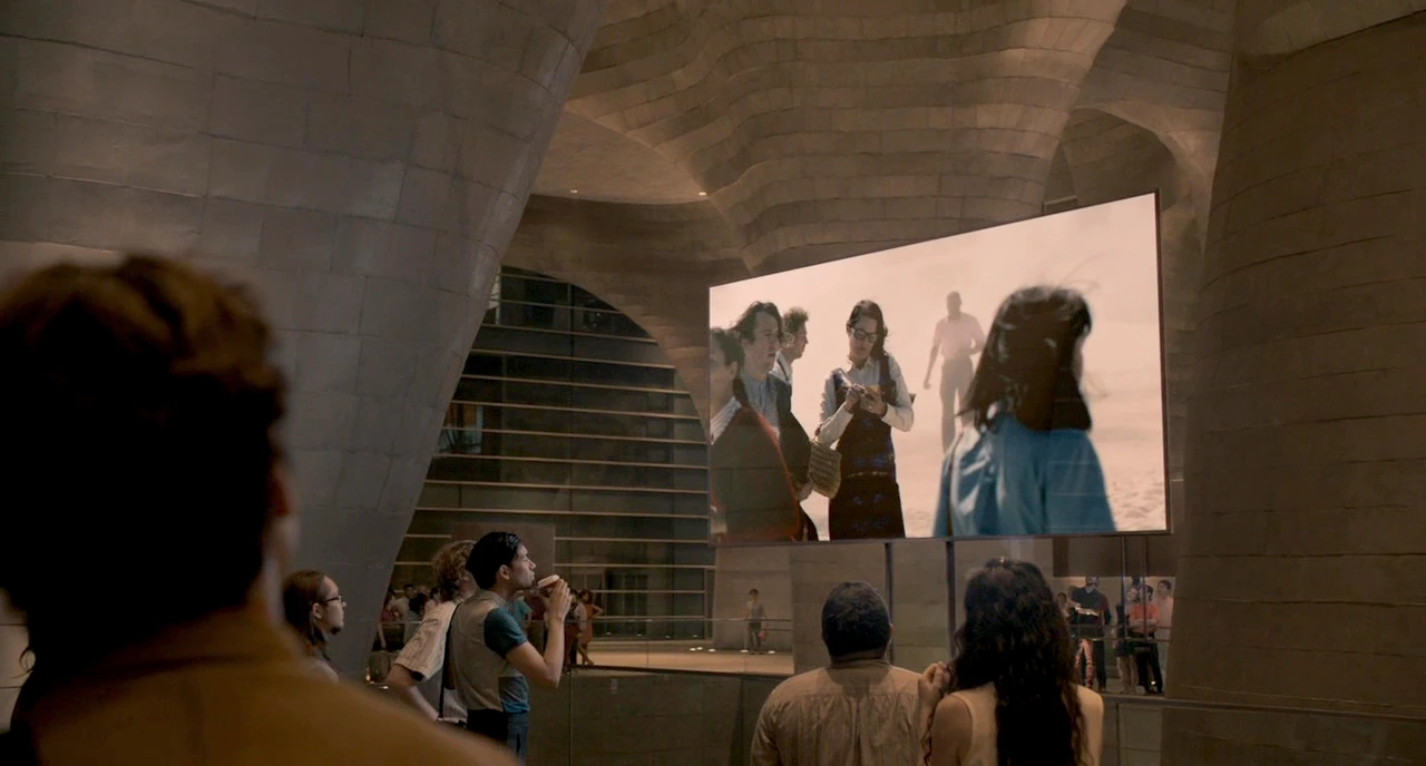감독이 특히 이곳에서 영화를 촬영하기로 결심한 이유는 도로 위를 덮은 거대한 고가 육교 덕에, 길을 오가는 사람들을 멀리 찍더라도 화면에 잡히는 도로 위 자동차들의 모습을 최소화할 수 있었기 때문이라고 한다. 이만큼이나 발달한 대도시 한가운데서 넓은 보도 위에 보행자들만 보이는 풍경은 과연 생소했다. 흔히 미래의 모습이라고 하면 고도로 발달한 이동 수단을 먼저 떠올리기 쉬운데 오히려 차도가 없는 대도시의 모습을 담고자 했다는 점이 인상적이다.