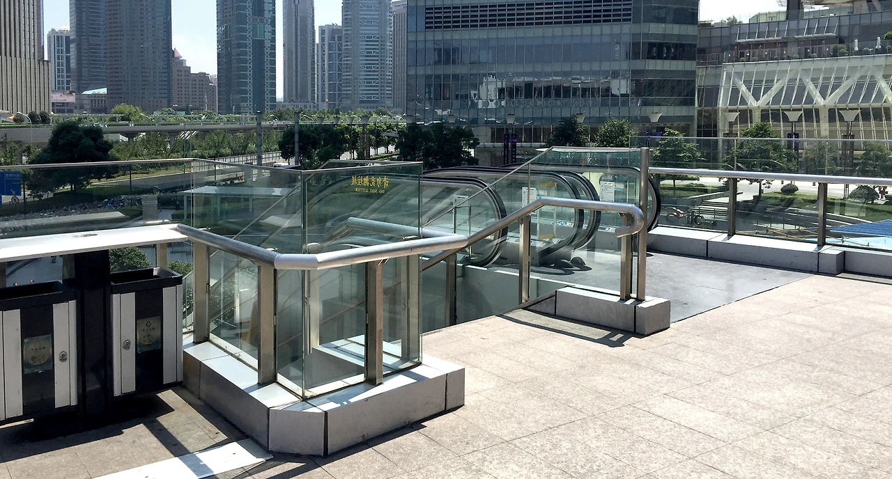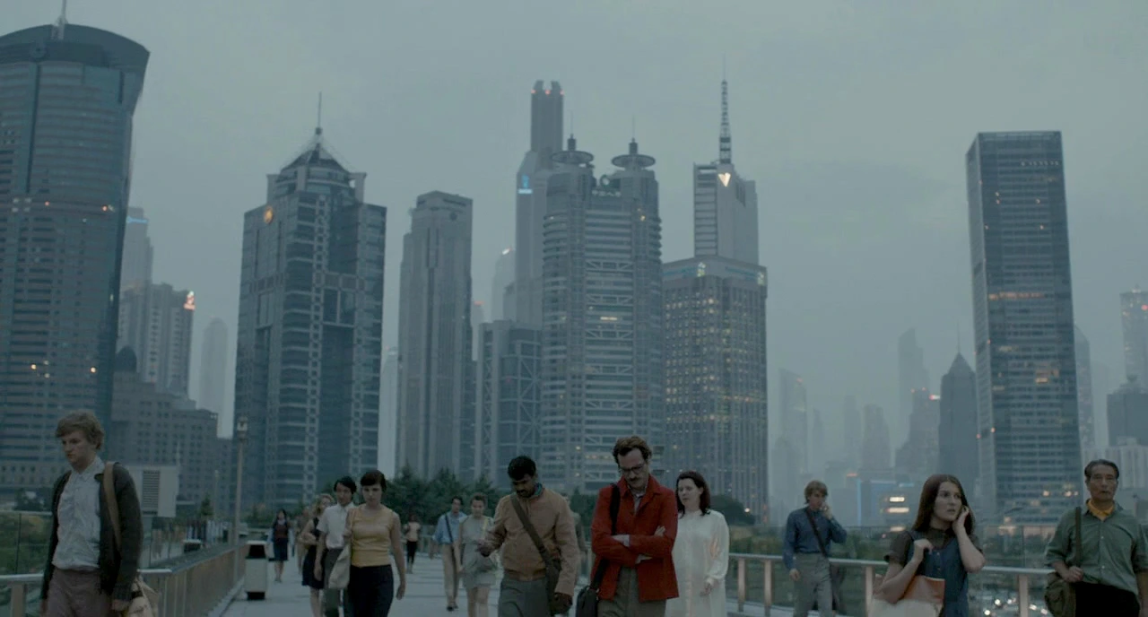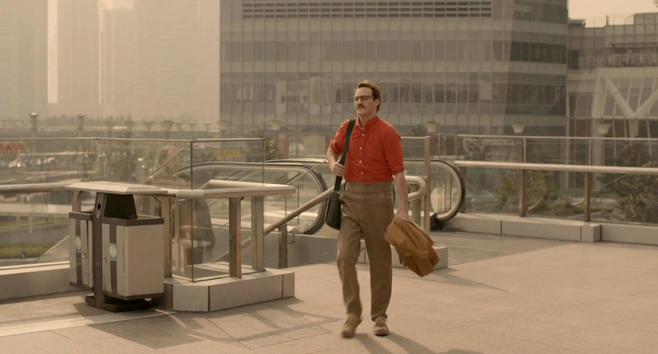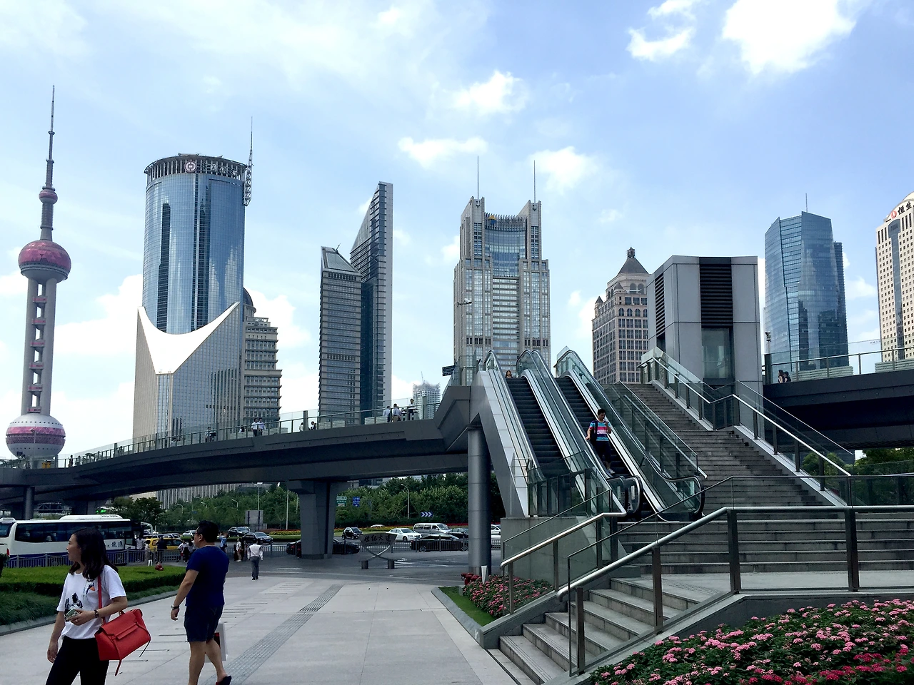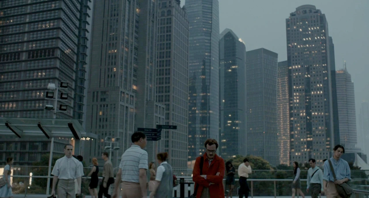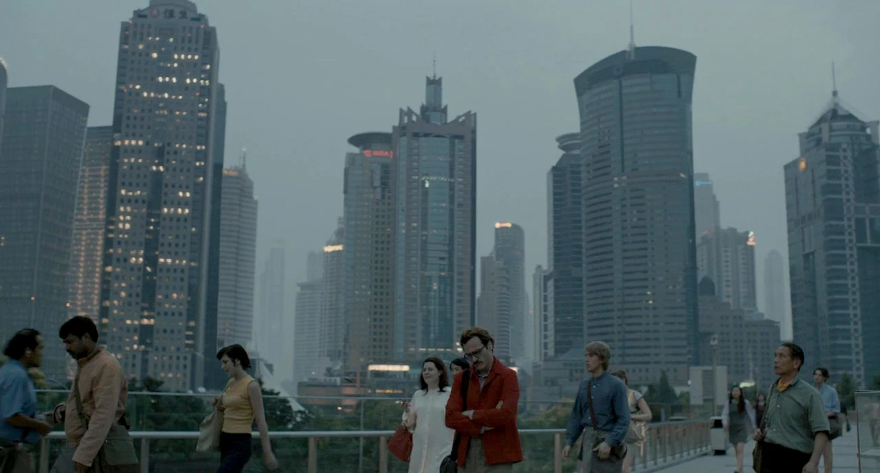 주인공 테오도르가 출퇴근하던 길의 촬영 장소인 루자쭈이(陆家嘴)역에 내리니 다양한 형태의 고층 빌딩들로 이루어진 스카이라인과, 에스컬레이터가 생소한 거대한 육교의 모습이 눈앞에 펼쳐졌다. 감독이 왜 이곳을 미래 도시의 촬영지로 점 찍었는지를 바로 이해할 수 있을만한 광경이었다. 하지만 지나치게(?) 맑은 날씨 탓에 영화의 분위기가 바로 느껴지지는 않았다. 육교에 올라 미리 준비해 간 영화 스틸컷 속의 지점들을 찾아 나서 보기로 했다.