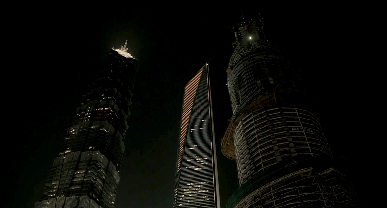 위 스틸컷은 테오도르가 사만다와 다투고 난 뒤 거리에서 빌딩 숲을 올려다보는 장면이다. 이 사진도 미리 의도한 건 아니었는데 사진들 중에 우연히 비슷한 구도의 것이 있길래 올려본다. 아마도 상하이 국제금융센터(上海環球金融中心, SWFC) 전망대에서 야경을 감상하고 내려와서 찍었던 것 같다. 촬영 지점이 전혀 달라서 빌딩들의 순서에 차이가 있다. 세 빌딩은 아래 사진을 기준으로 왼쪽부터 SWFC(100층), 진 마오 타워(金茂大厦, 88층), 상하이 타워(上海中心大厦, 128층)다. 특히 올해 완공된 상하이 타워는 영화 스틸 속에선 아직 공사 중이다.